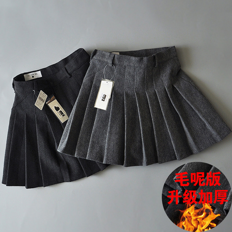 TB百褶裙秋冬新款高腰学院风西装料显瘦A字裙毛呢半身裙短裙裤女