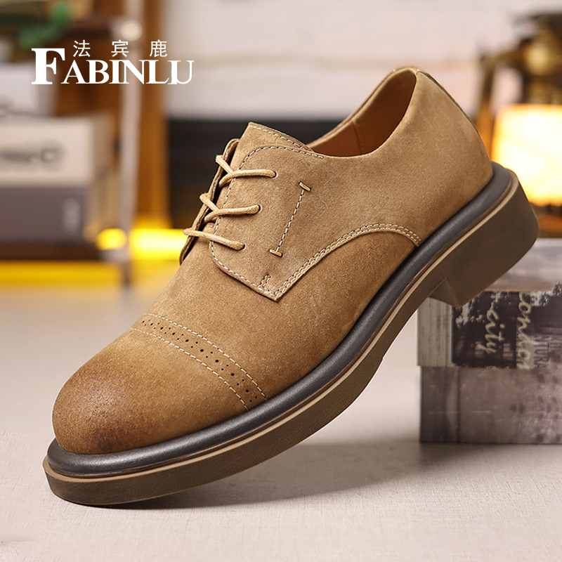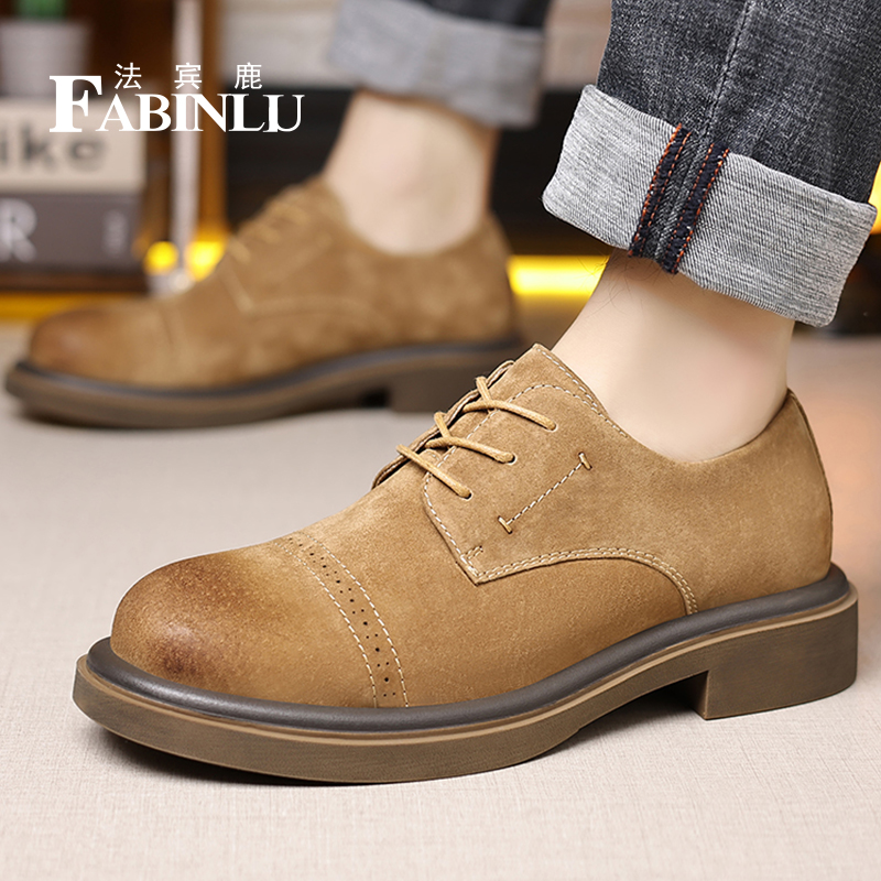 法宾鹿布洛克休闲皮鞋男士德比鞋英伦风工装鞋真皮透气大头皮鞋子