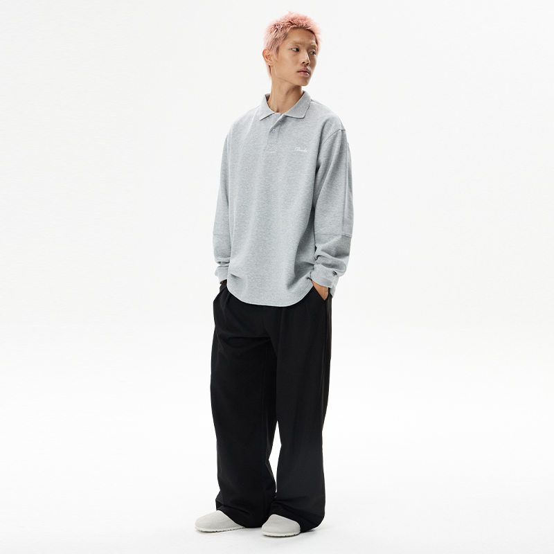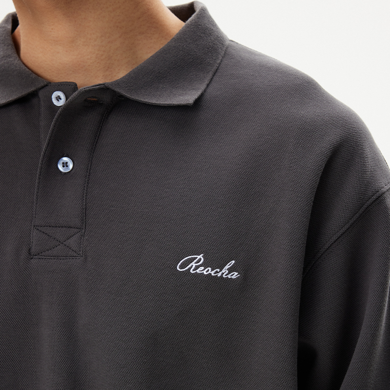 REOCHA热呈logo刺绣长袖T恤男头翻领潮牌国潮复古宽松美式POLO衫