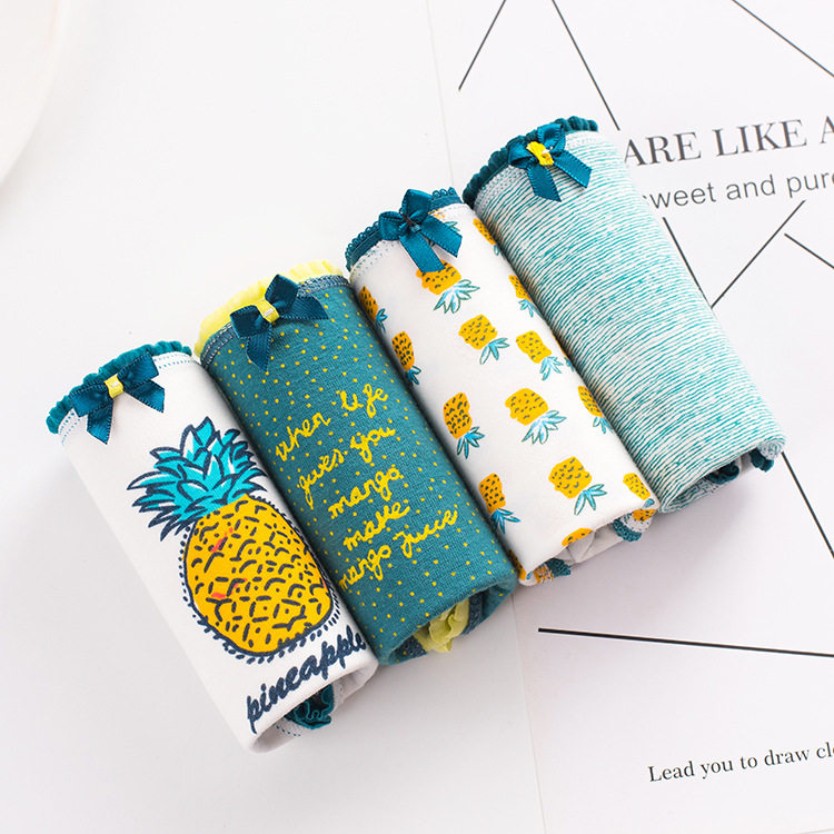 4条礼盒装纯棉内裤女内裤多色可选学生款女士内裤蕾丝边内裤校园