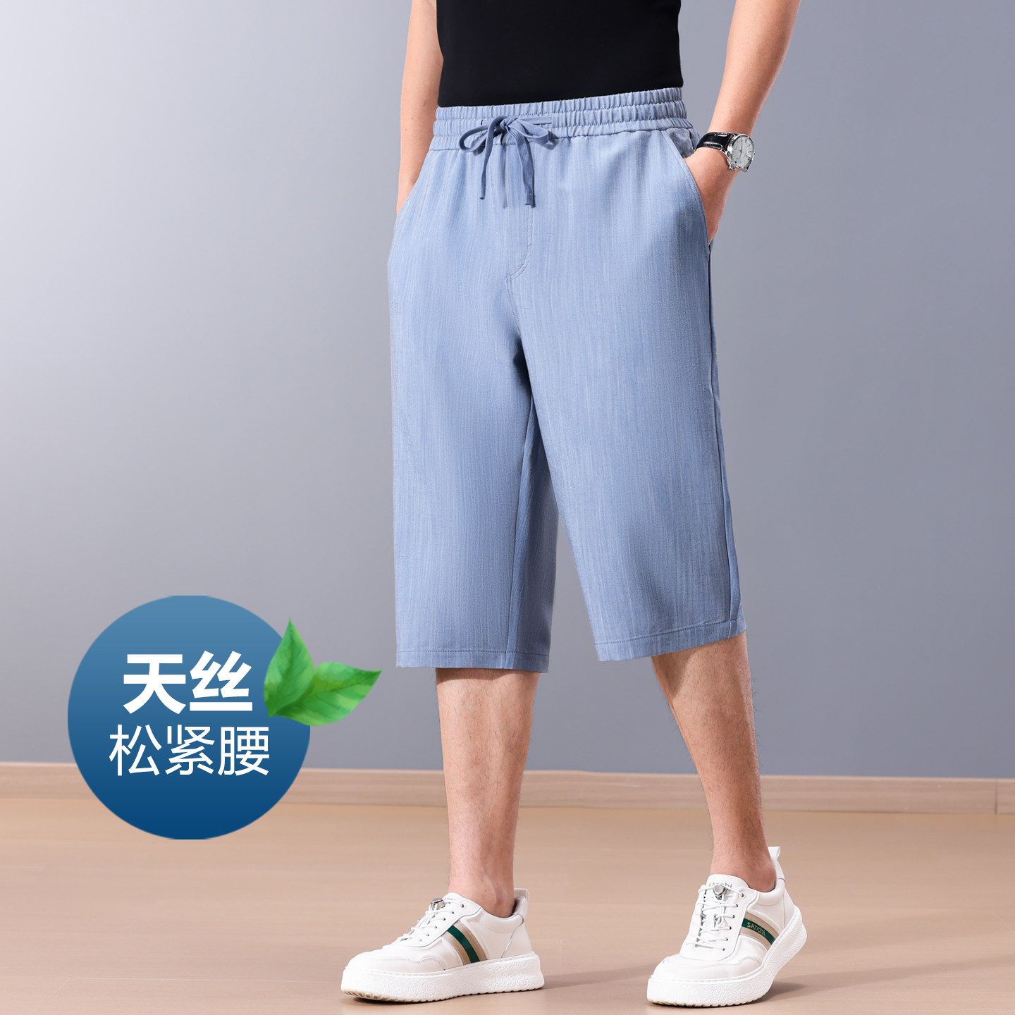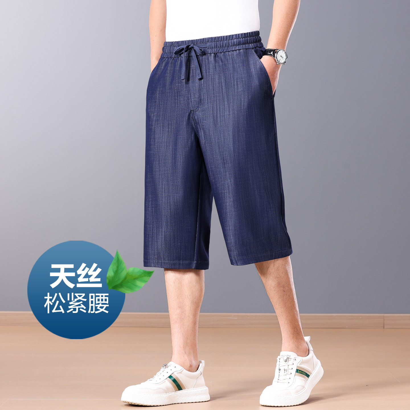 天丝七分裤男 夏季超薄款男士牛仔七分裤直筒宽松中年休闲裤子男