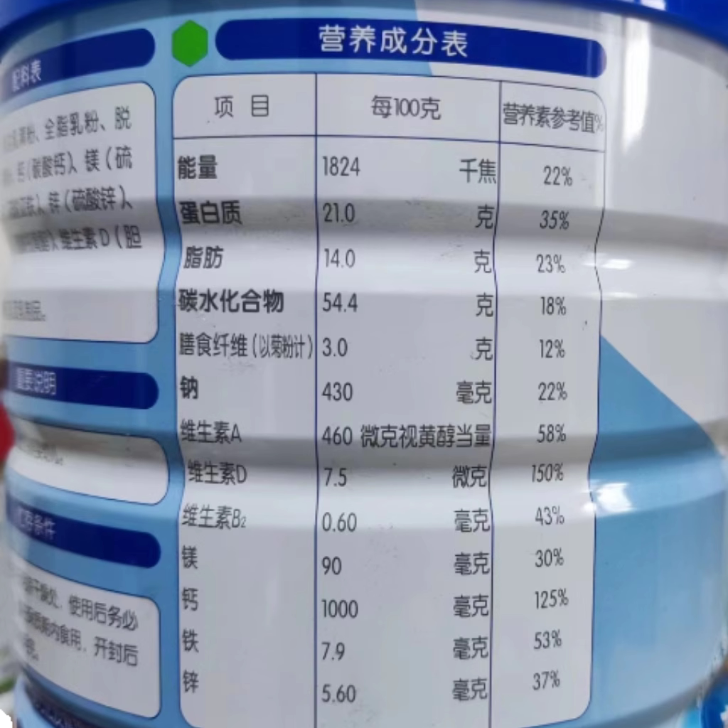 君乐宝乐钙钙铁锌800g*2罐装中老年成人学生上班族营养牛奶粉