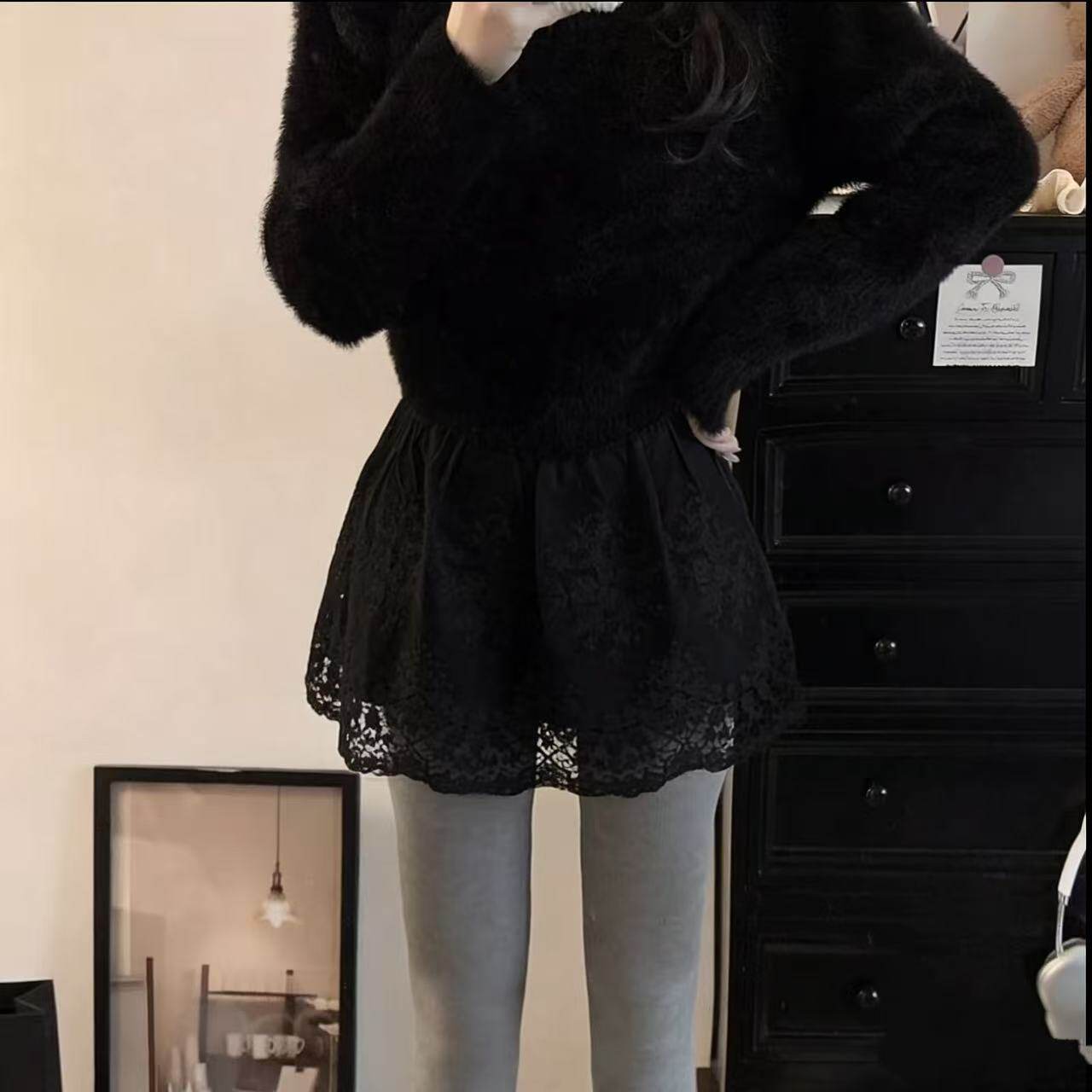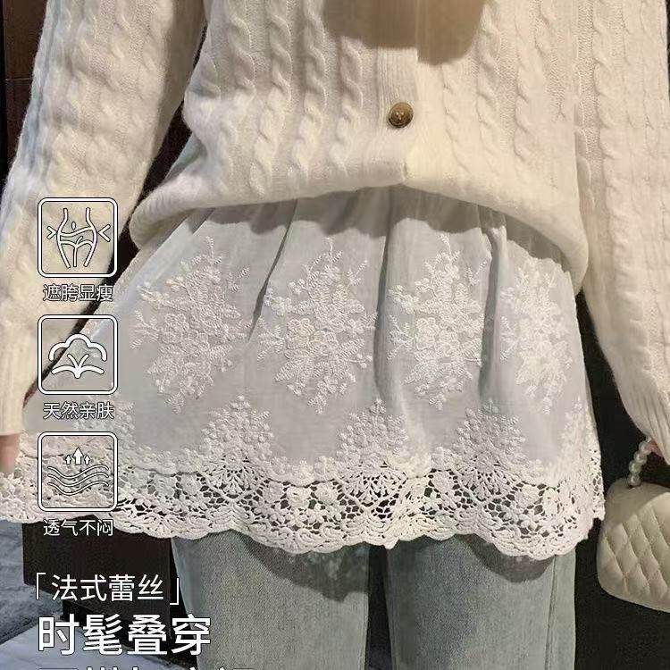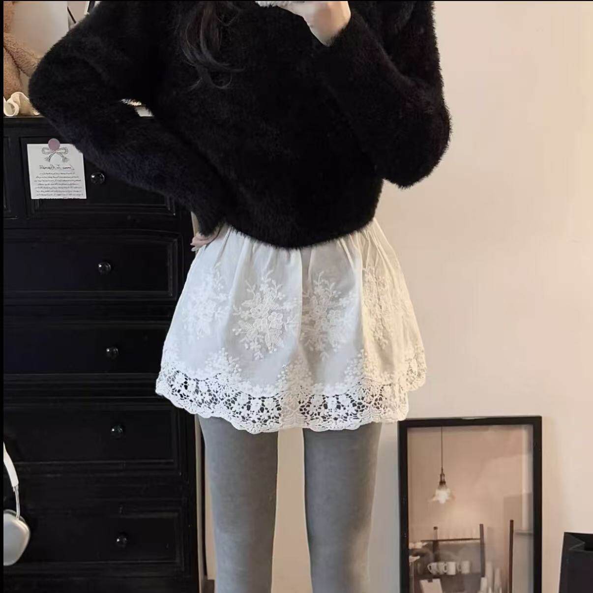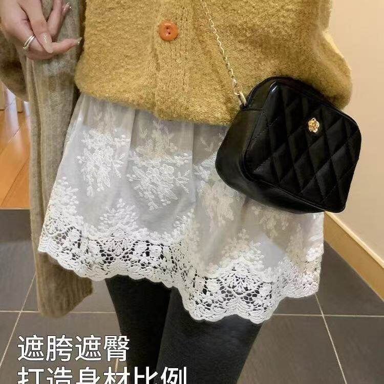卫衣毛衣叠穿打底短裙白色镂空蕾丝A字半身裙女高腰遮臀显瘦屁帘