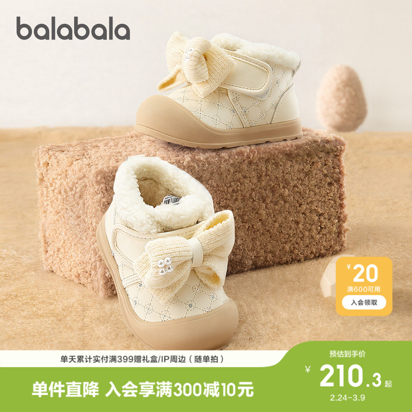 【商场同款】巴拉巴拉宝宝学步鞋男童棉靴儿童加绒雪地靴冬婴儿潮