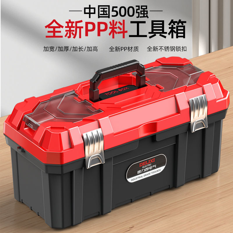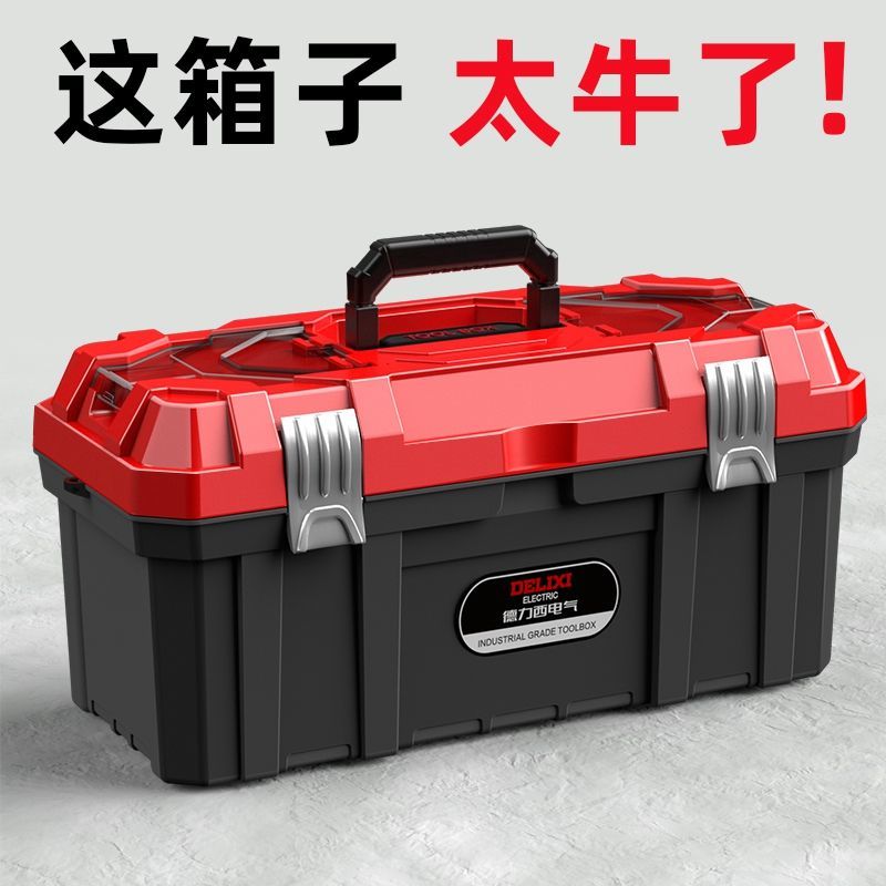 德力西电气五金工具箱家用超厚双层收纳箱多功能五金收纳盒车载