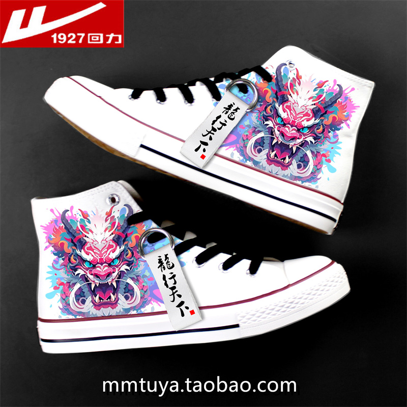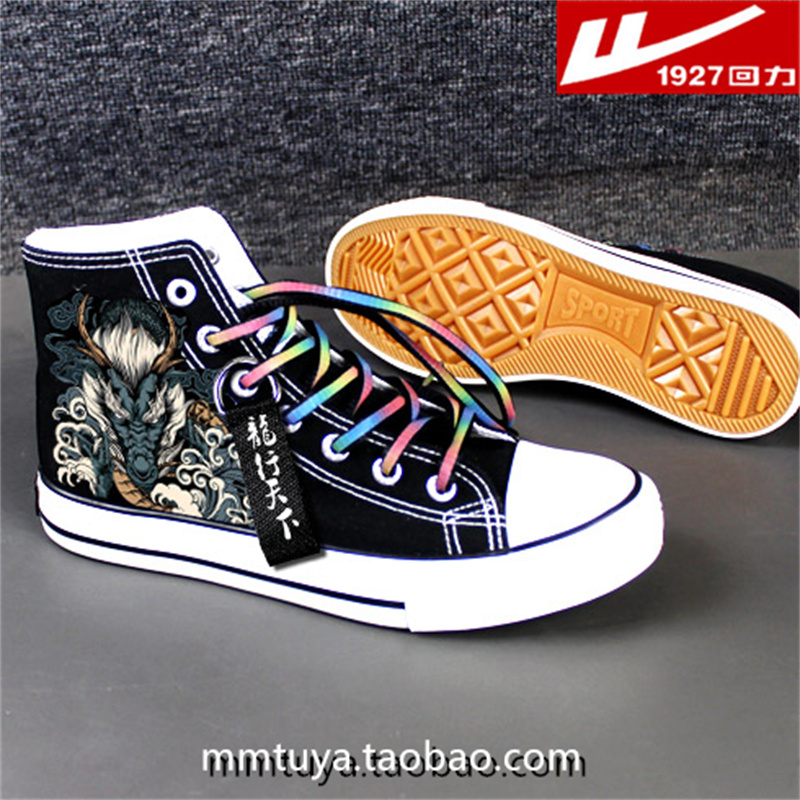2025秋季回力国潮联名帆布鞋中国龙手绘涂鸦鞋国风爆改男女学生鞋