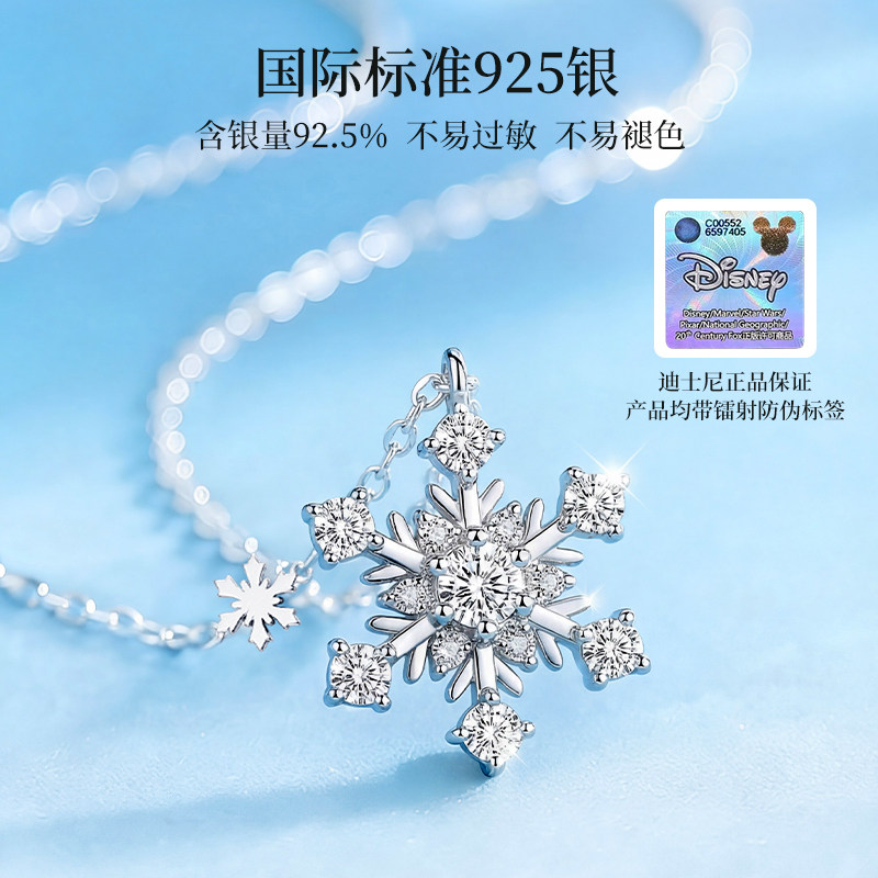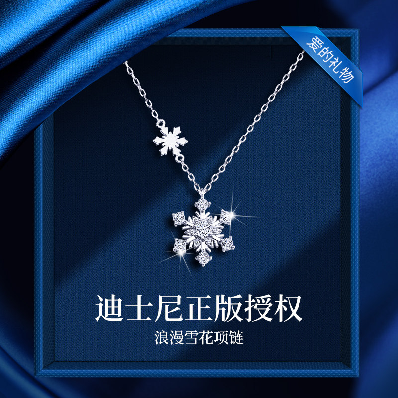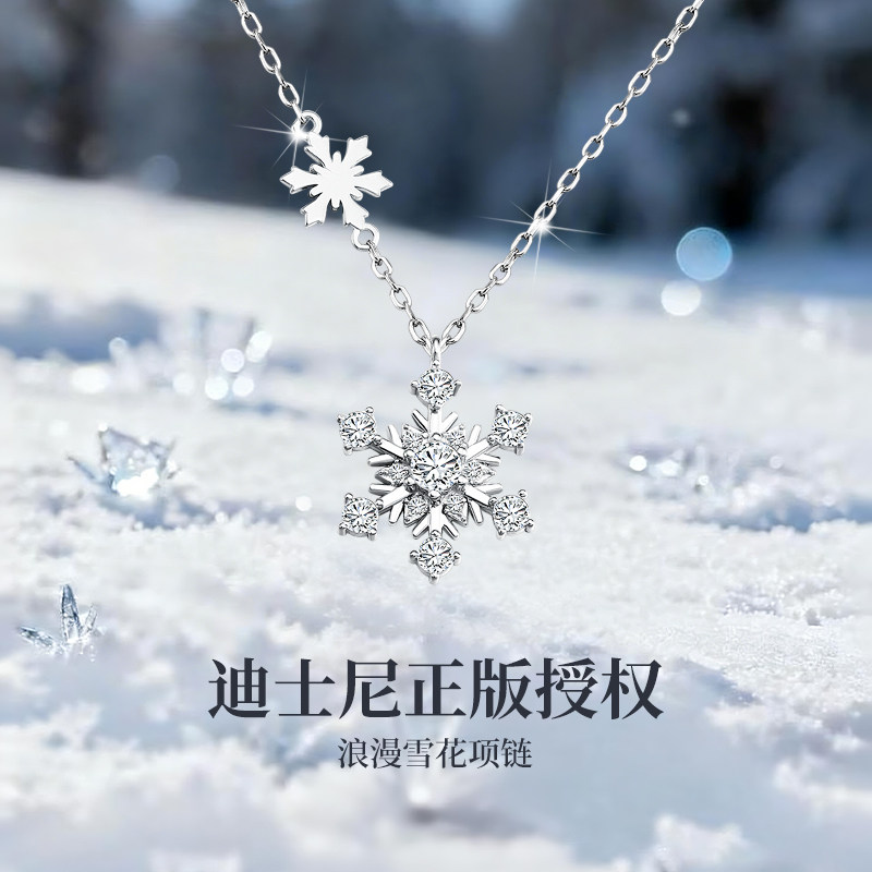 迪士尼雪花纯银项链女款吊坠小众轻奢情人节送女朋友闺蜜生日礼物