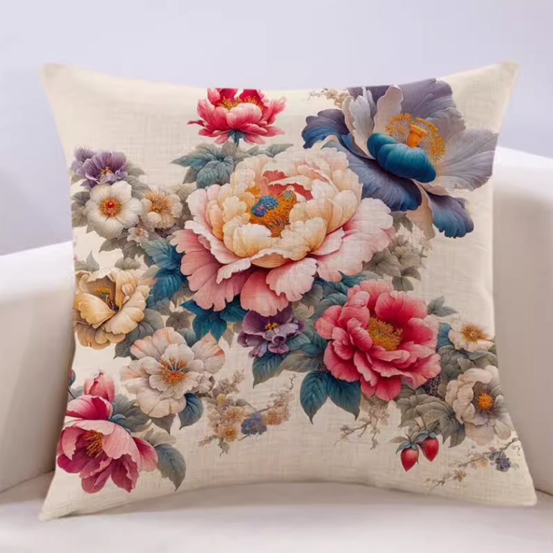 中式复古风牡丹花卉抱枕十字绣自己线绣客厅沙发靠垫枕套印花满绣