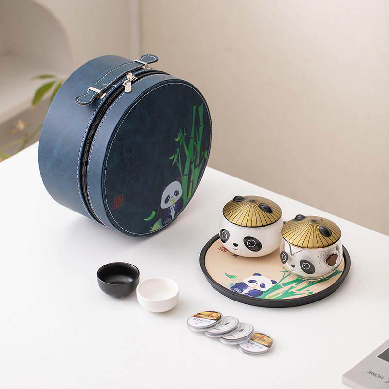 熊猫旅行茶具小套装可携式户外车载陶瓷泡茶壶茶杯简约茶具礼盒