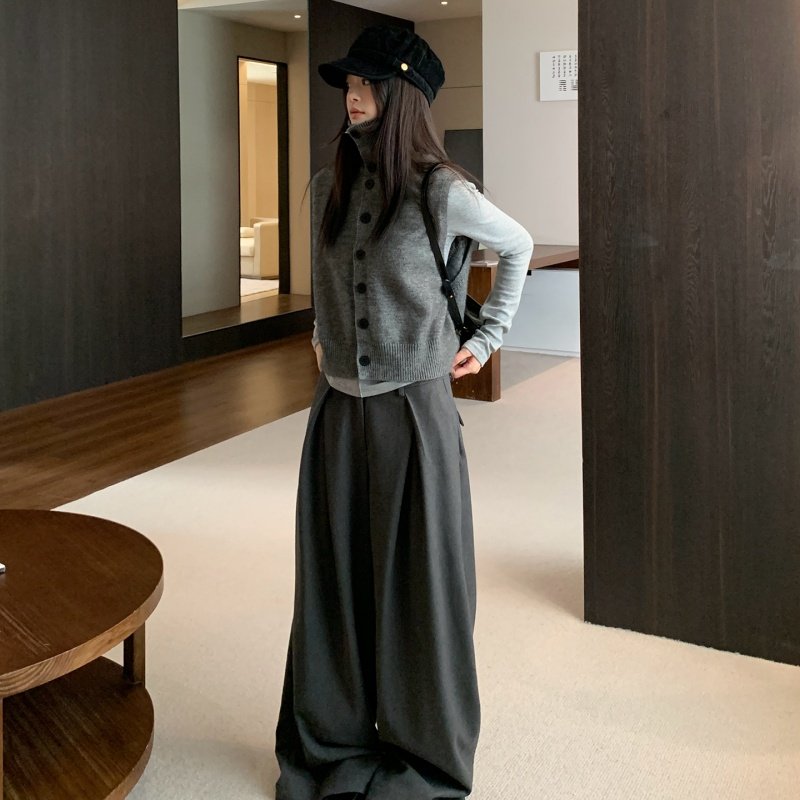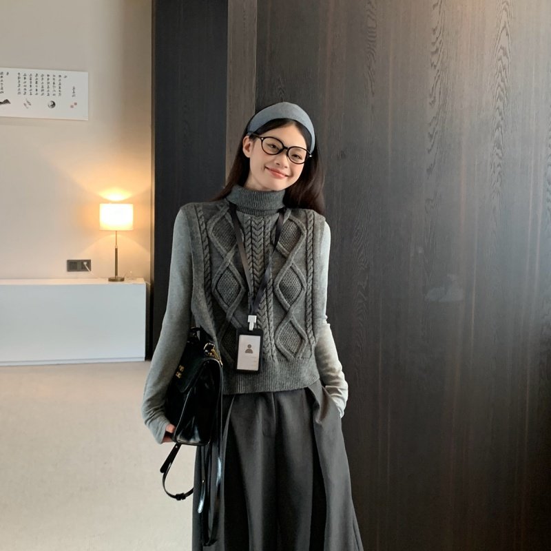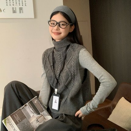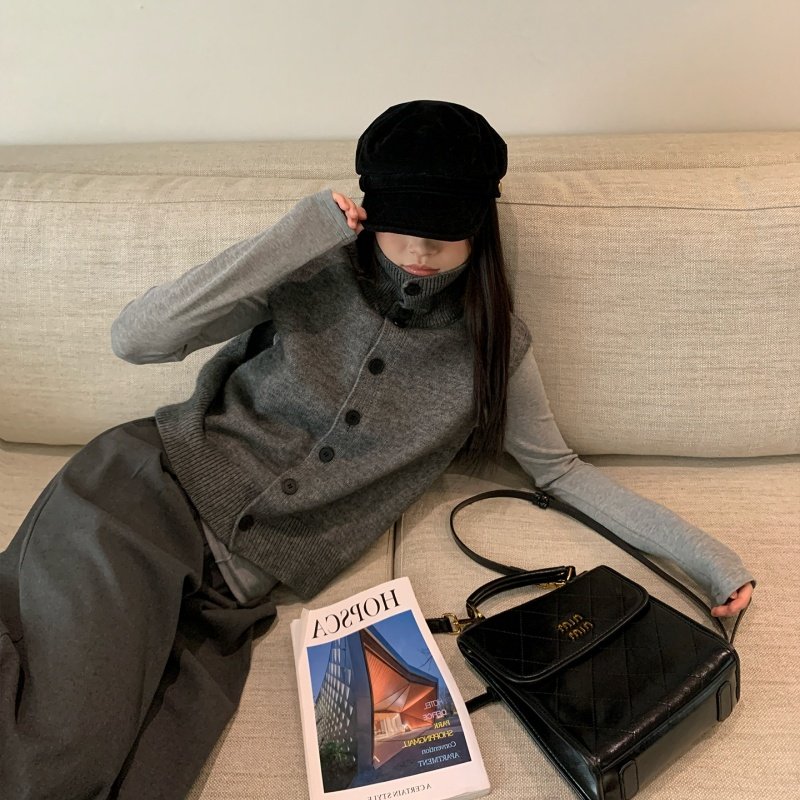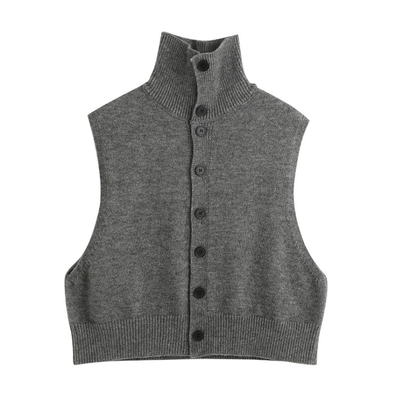 灰色双面穿高领针织衫背心女秋冬氛围感外搭叠穿坎肩无袖毛衣马甲