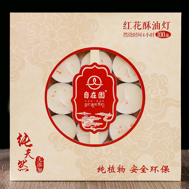 整箱顺丰包邮自在园酥油灯藏红花4小时100粒植物蜡烛室内供灯无烟