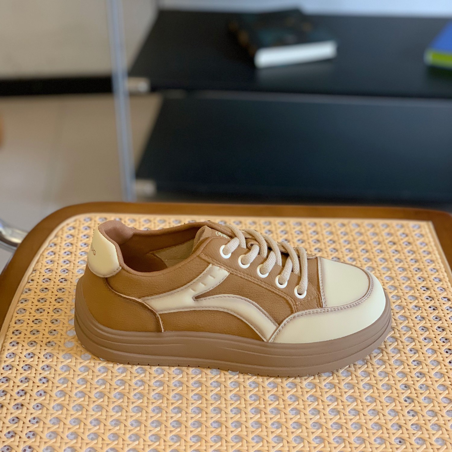 复古拼色百搭平底真皮休闲板鞋女2025年秋季新款小众配裙子小白鞋