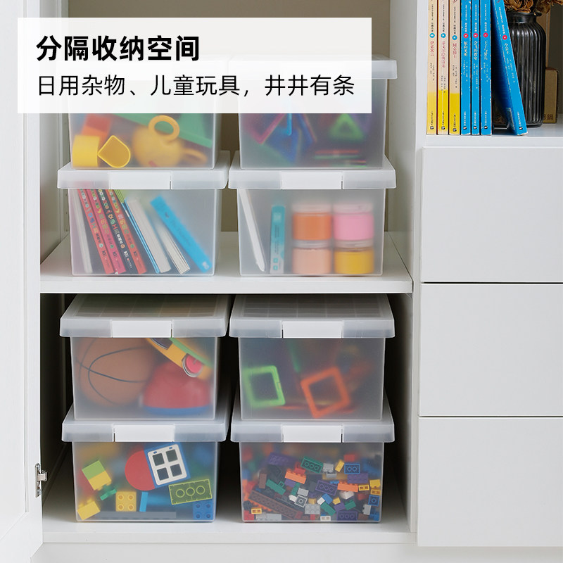 霜山塑料收纳箱带盖玩具储物盒可叠加透明被子衣物漫画书籍整理箱