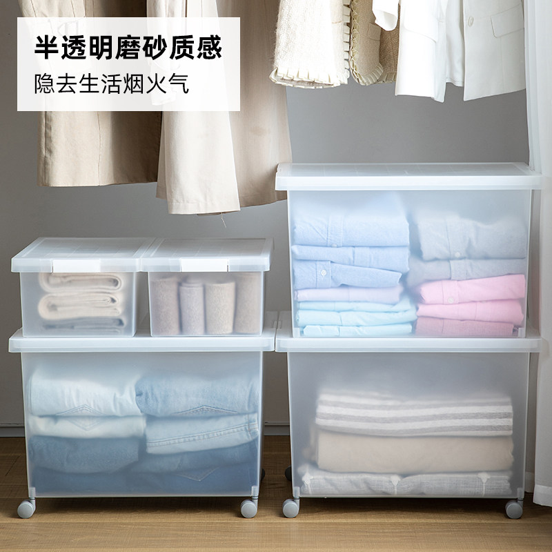 霜山塑料收纳箱带盖透明磨砂被子