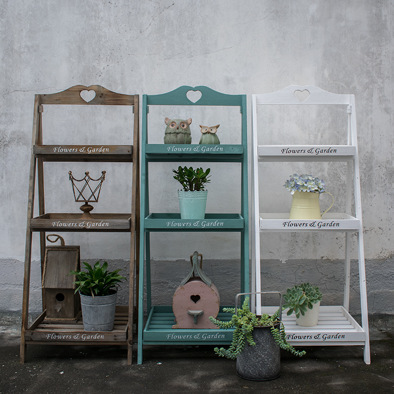 极速实木花几阶梯落地式多层花台C复古花架田园乡村花园园艺杂货