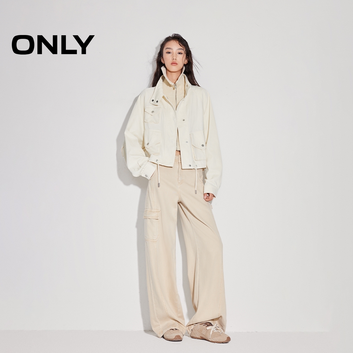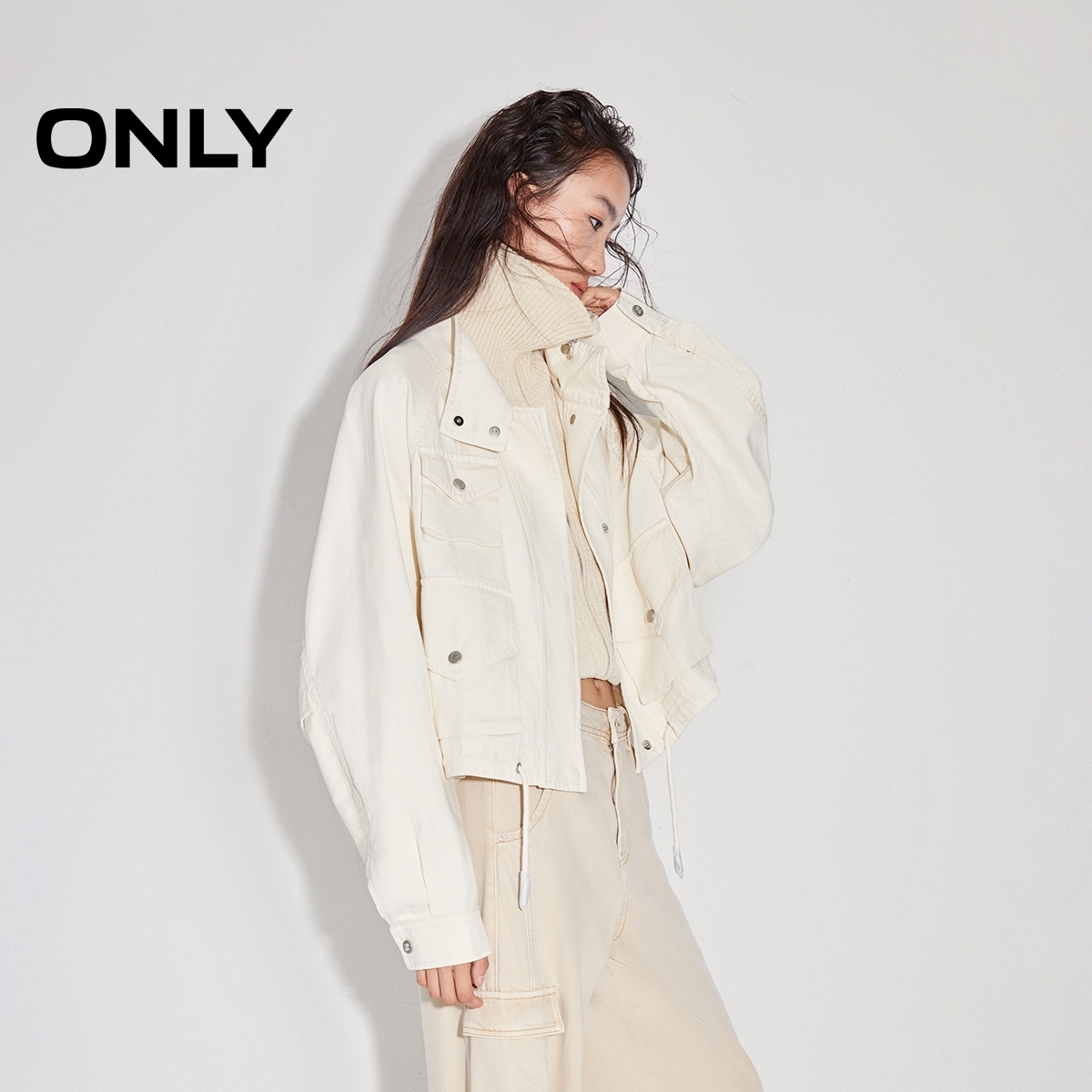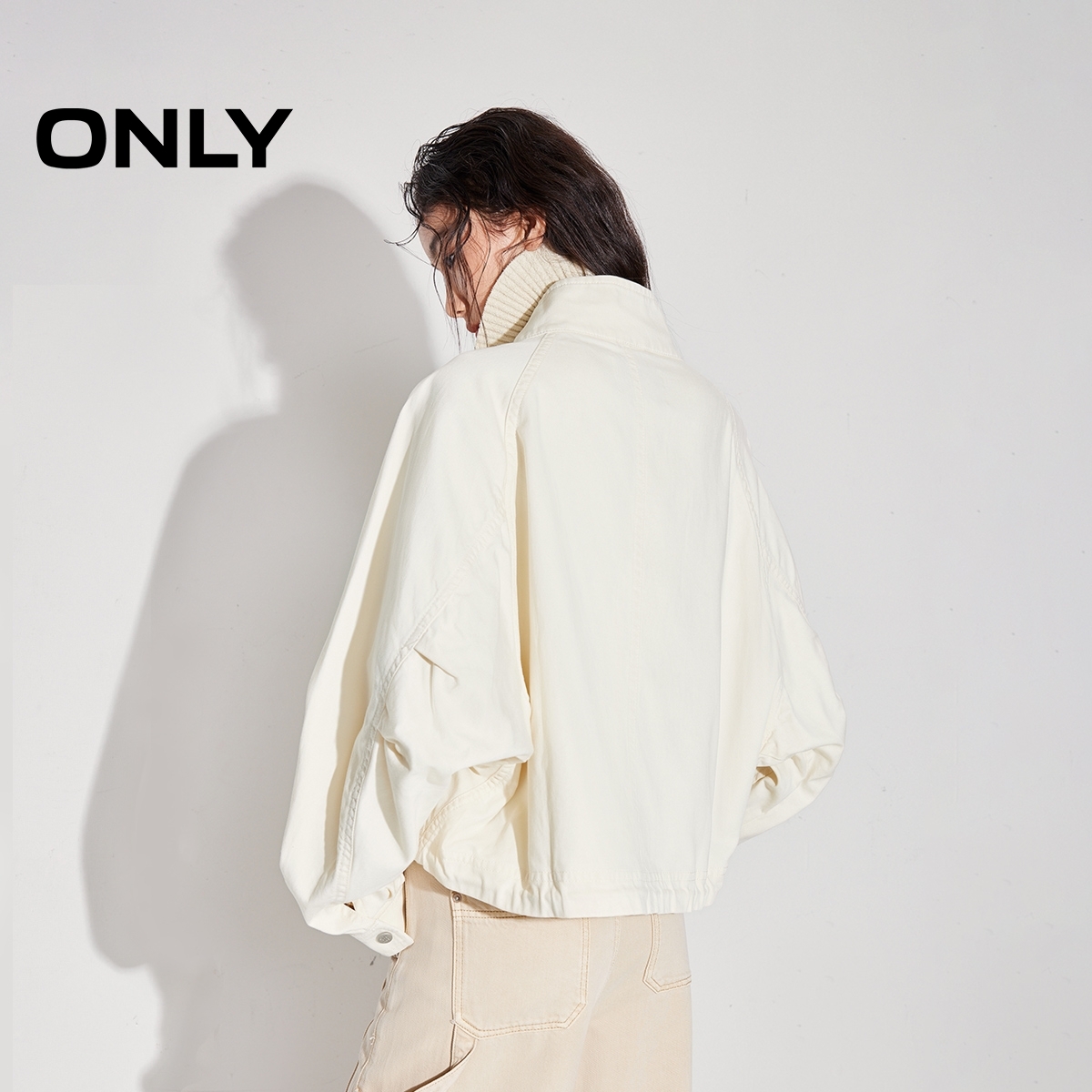 ONLY2025秋季新款通勤风百搭立领不对称口袋宽松蝙蝠袖风衣外套女