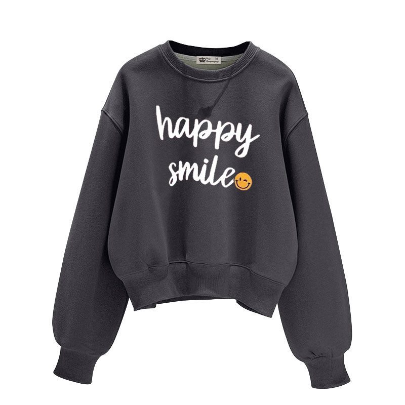 字母笑脸休闲圆领短款卫衣女2025春秋冬宽松慵懒风加绒加厚套头潮