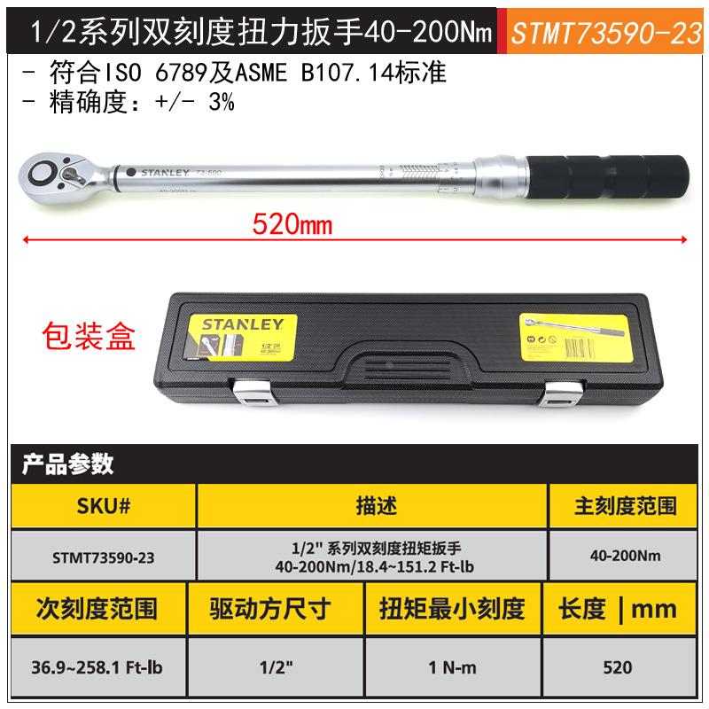 史丹利1/2系列双刻度扭力扳手预置式扭矩40-200Nm STMT73590-23