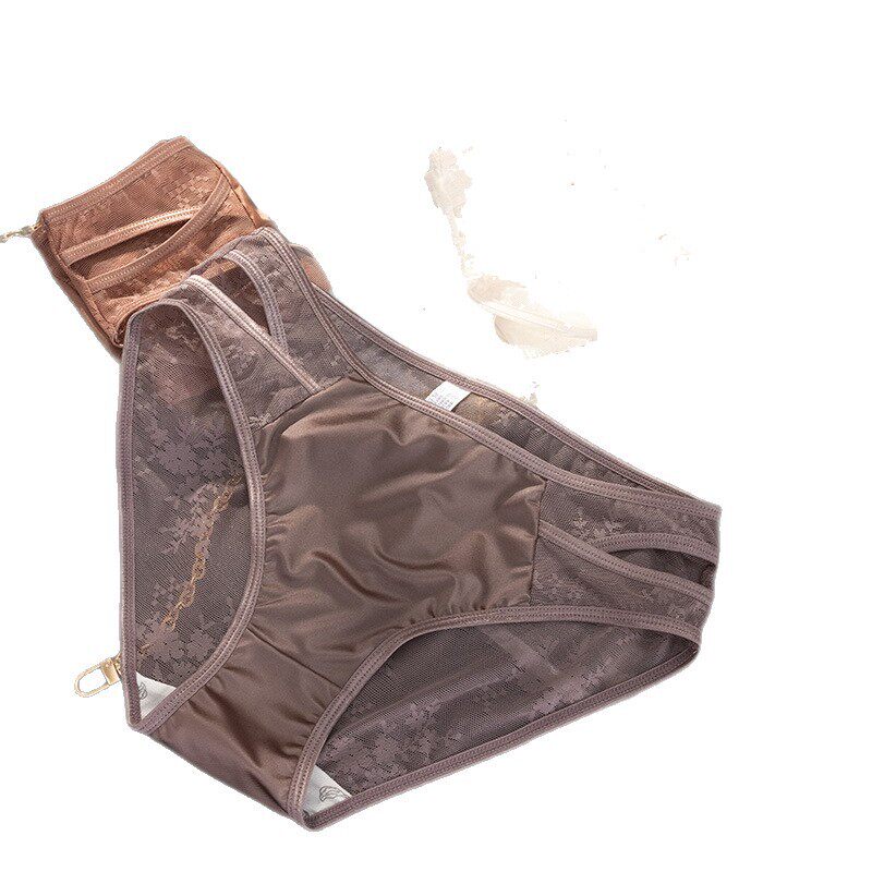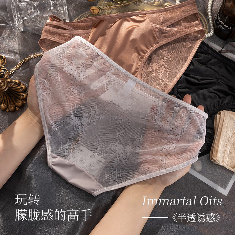 丝裆纯欲蕾丝缎面透气大码三角裤