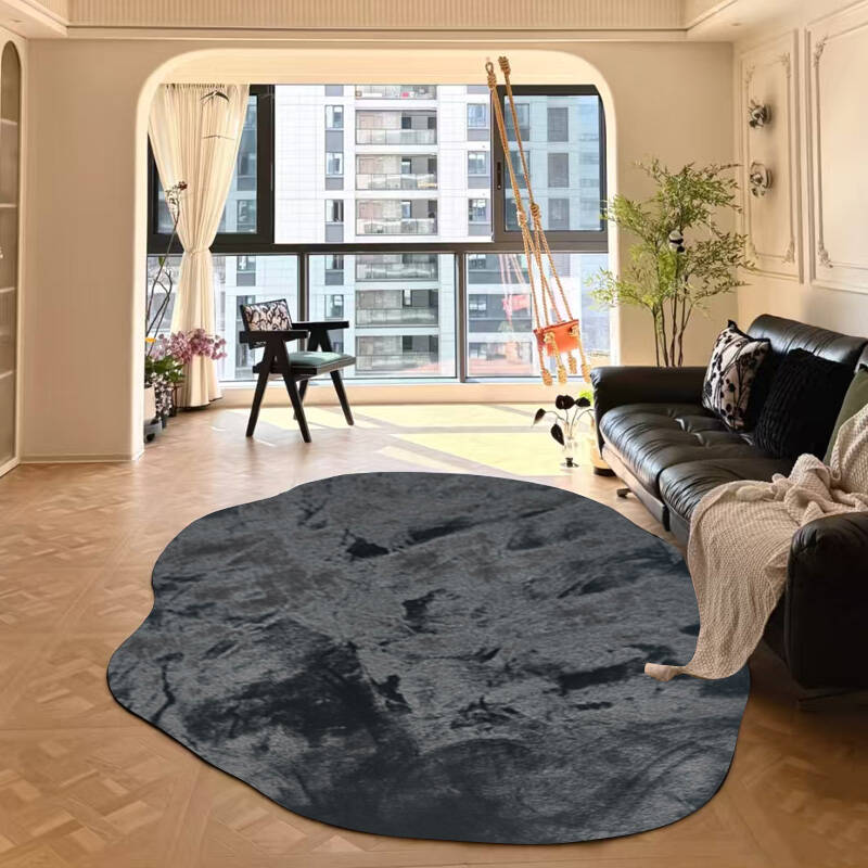 地毯客厅异形沙发茶几毯仿兔毛高级不规则家用防滑卧室垫黑色地毯