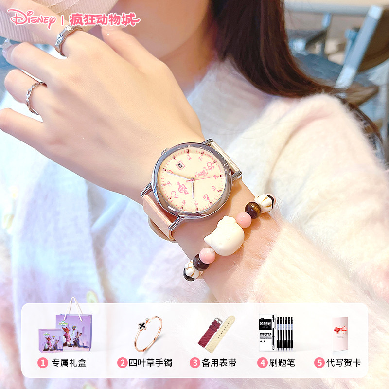迪士尼疯狂动物城手表女款学生初中高中女生考试专用女孩机械石英