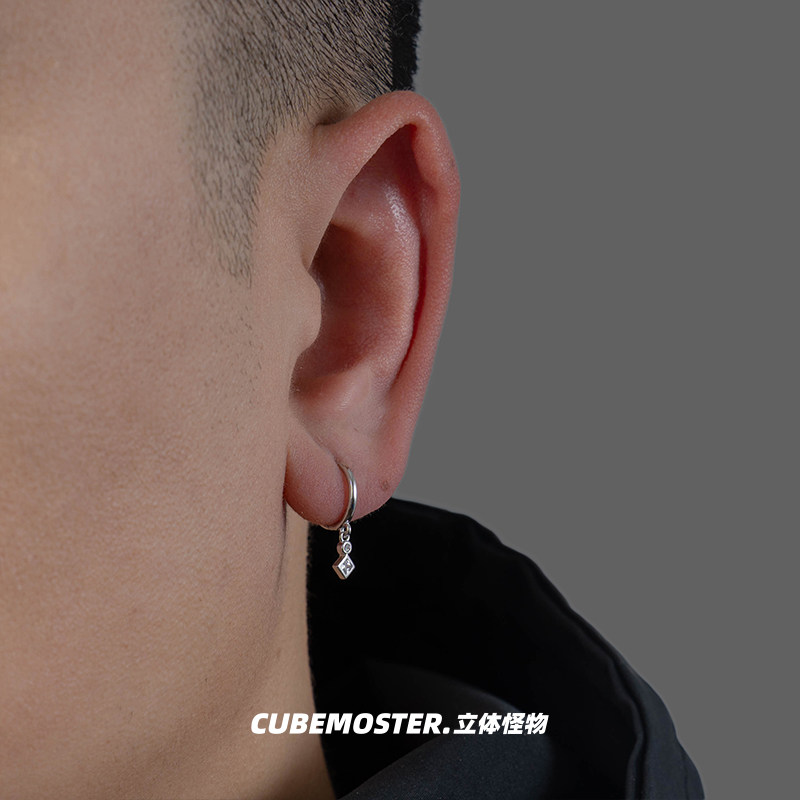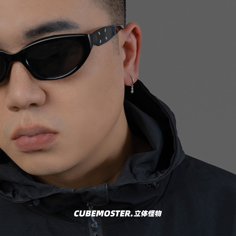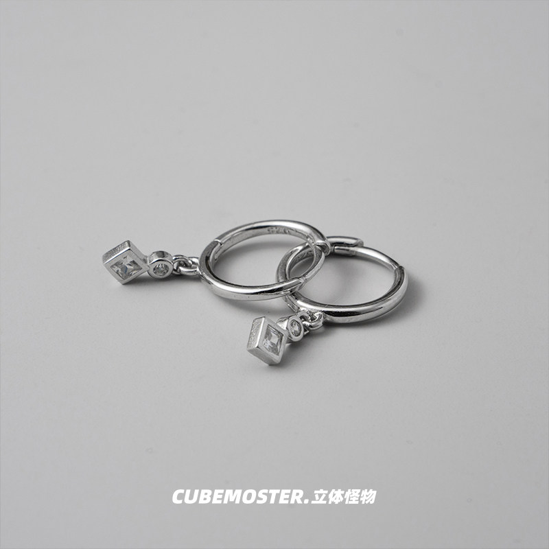 立体怪物 精致小吊坠S925银男女百搭痞帅耳环几何ins冷淡风耳圈