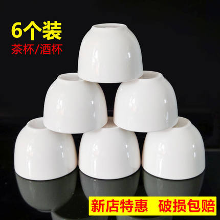 20个装纯白陶瓷茶杯酒杯家用商用酒店专用中式纯色江中杯100ml