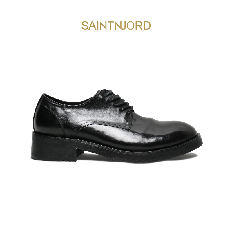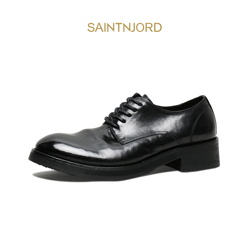 圣尼约德马皮德比鞋褶皱质感复古水洗低帮正装商务休闲皮鞋厚底