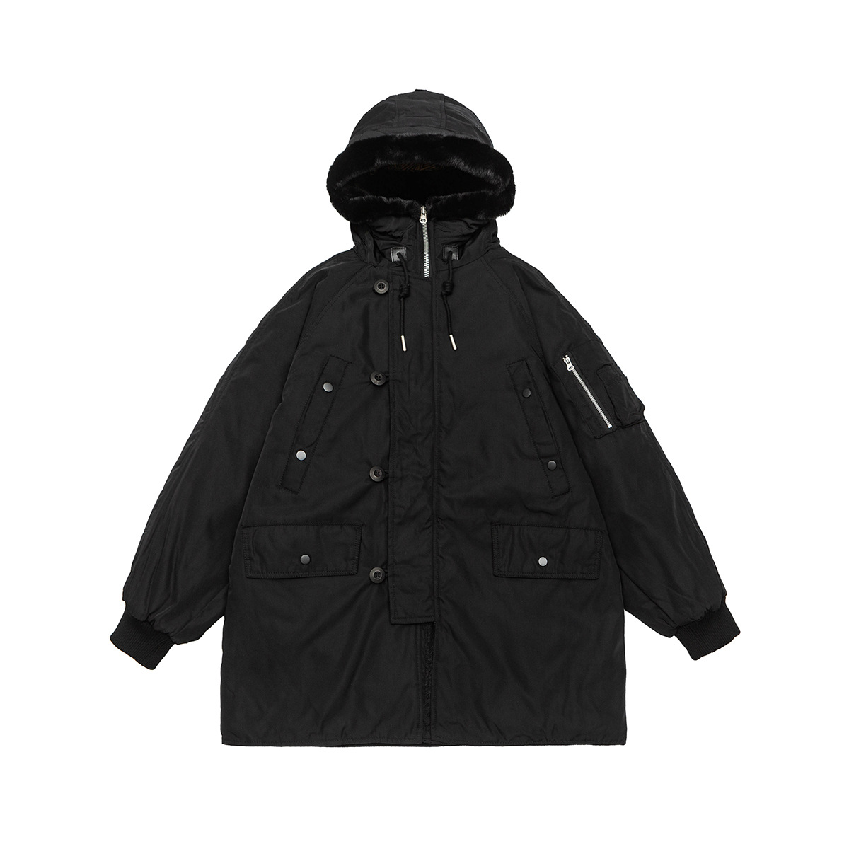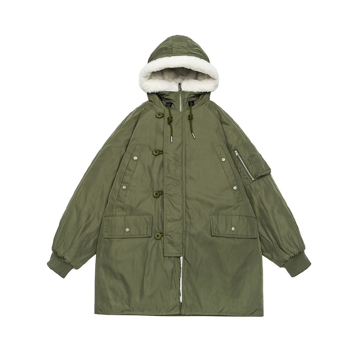日系2025冬季羊羔毛绒棉衣男女款宽松加厚保暖防水中长款棉服连帽
