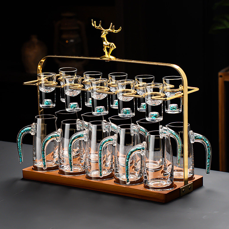 高端金箔白酒杯套装家用高级分酒器轻奢高档酒具子弹杯烈酒杯套装