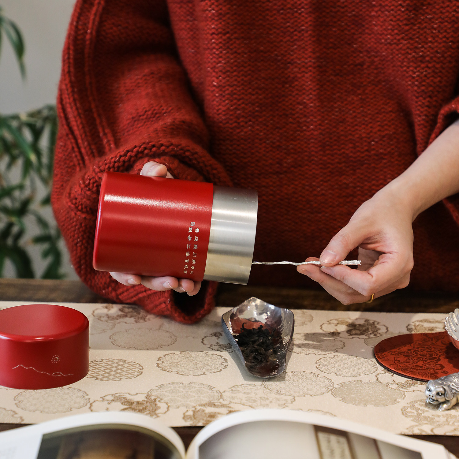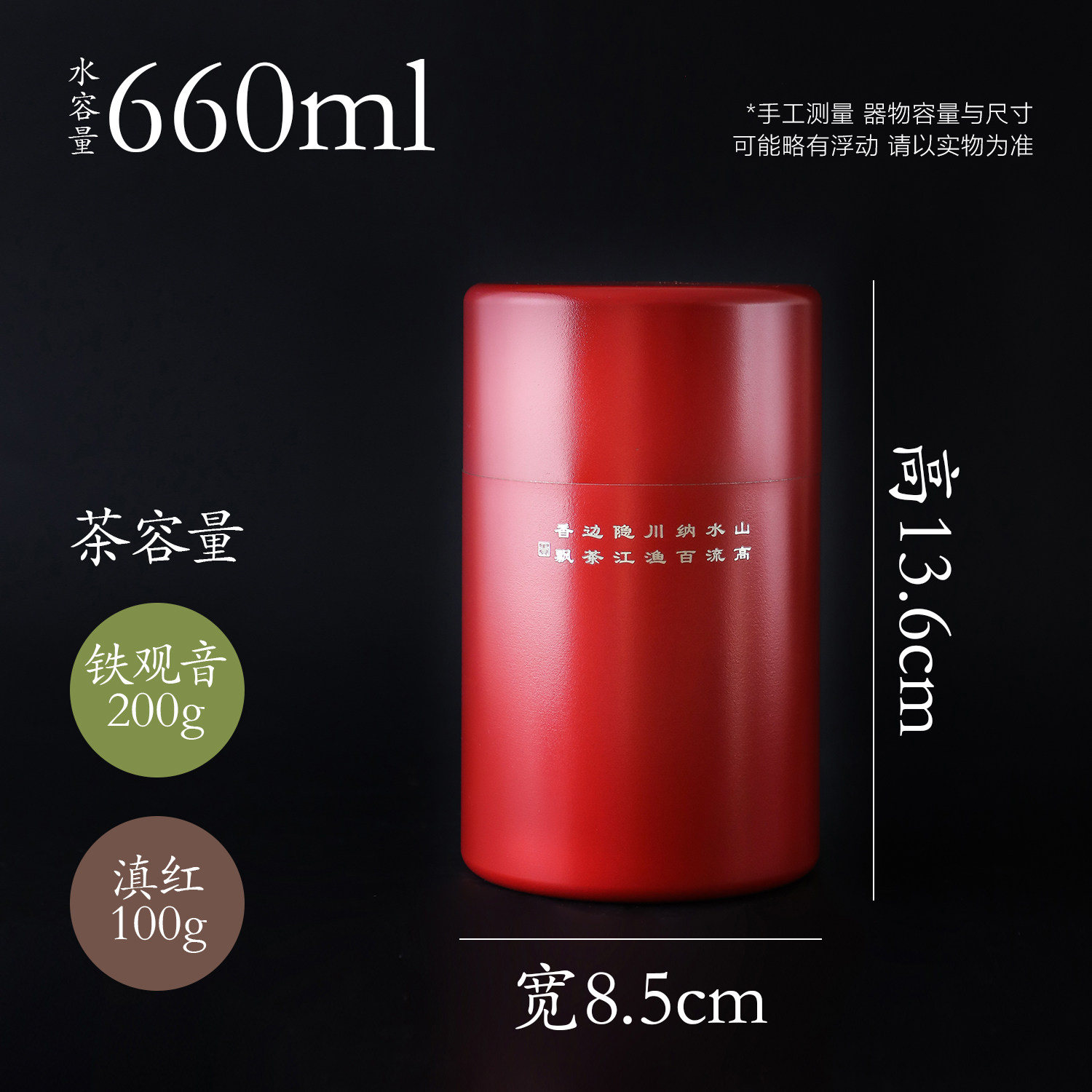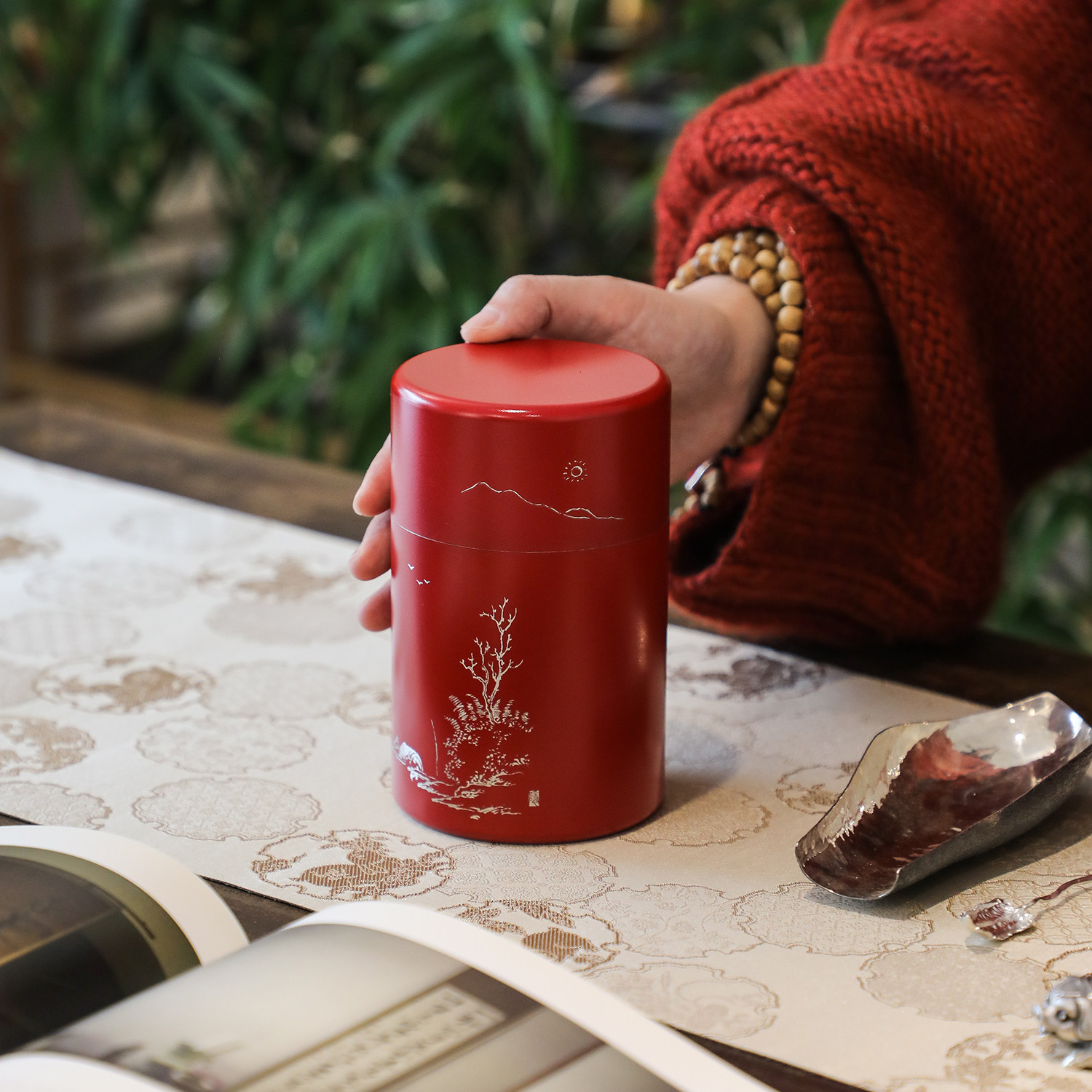 秦藏阁 罐筒隐江红纯锡罐复古中式茶叶罐金属罐藏密封强中号