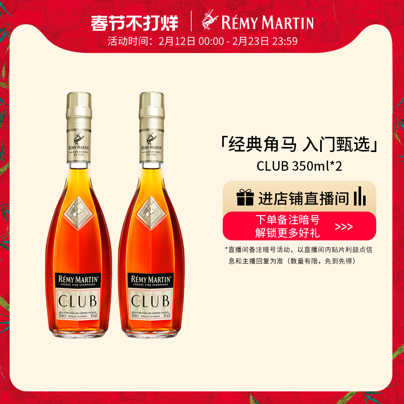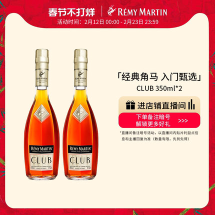 【品牌旗舰】法国人头马CLUB优质香槟区干邑白兰地350ml*2瓶洋酒