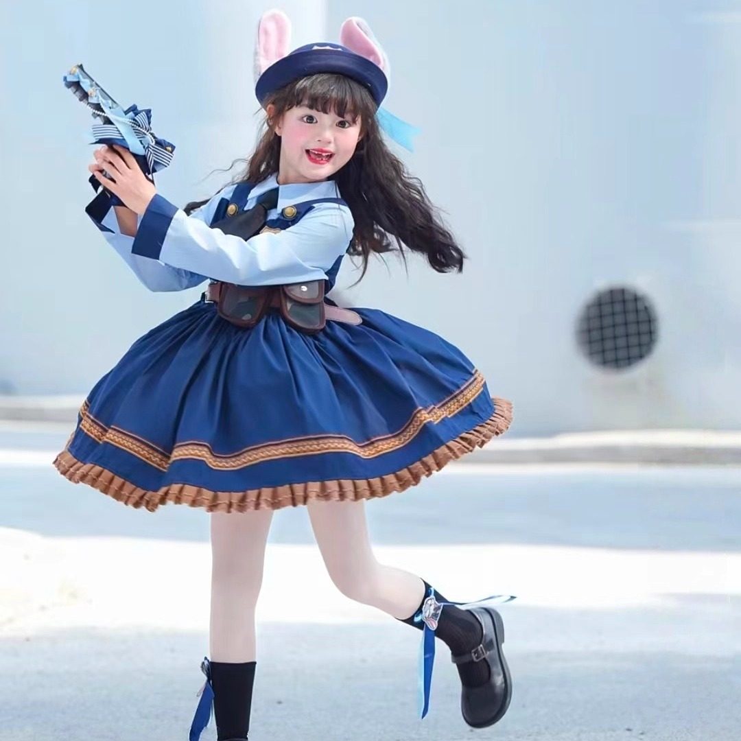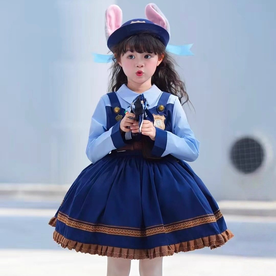 朱迪兔子警官女童裙子儿童COS洛丽塔衣服宝宝公主裙生日裙迪士尼