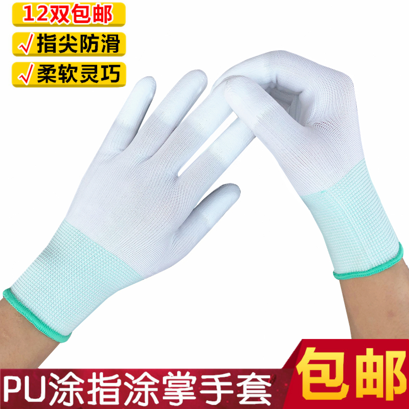 薄款灰色白PU涂指手套劳保防滑耐磨防尘尼龙纱线涂层透气带胶干活