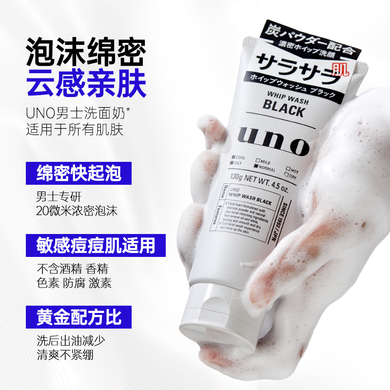 资生堂uno洗面奶男士专用控油祛痘吾诺氨基酸洁面乳日本官方正品