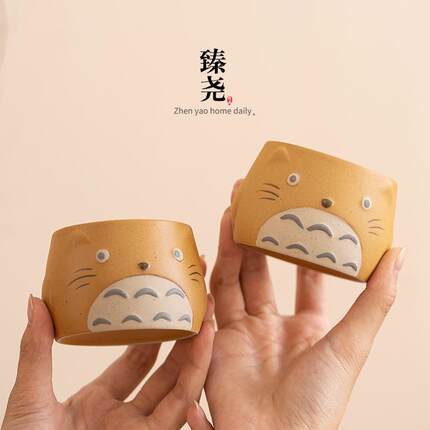 臻尧陶瓷日式创意龙猫主人杯茶杯围炉煮茶单杯家用粗陶个人品茗杯