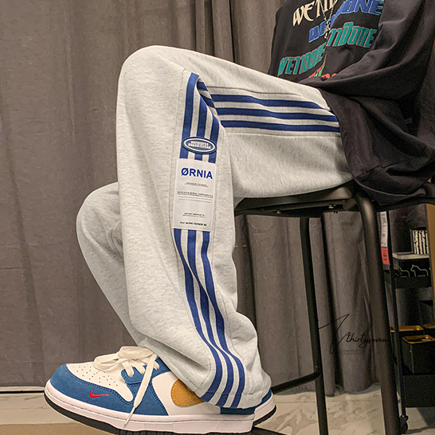 日系侧边三条杠运动卫裤