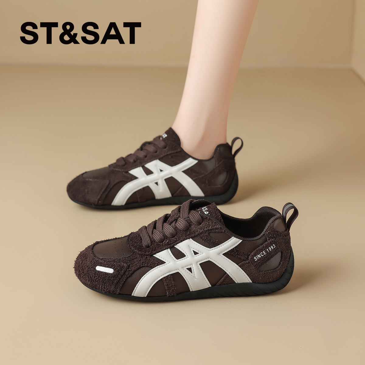 星期六复古红色德训鞋女内增高运动鞋子2025新款秋冬厚底休闲板鞋