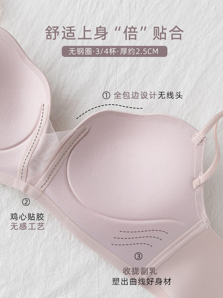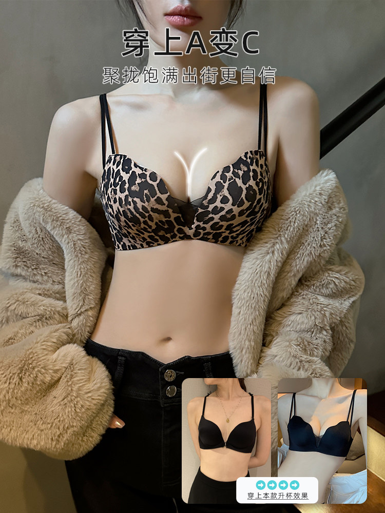 豹纹内衣套装性感无痕一片式小胸聚拢文胸加厚收副乳胸罩平胸显大