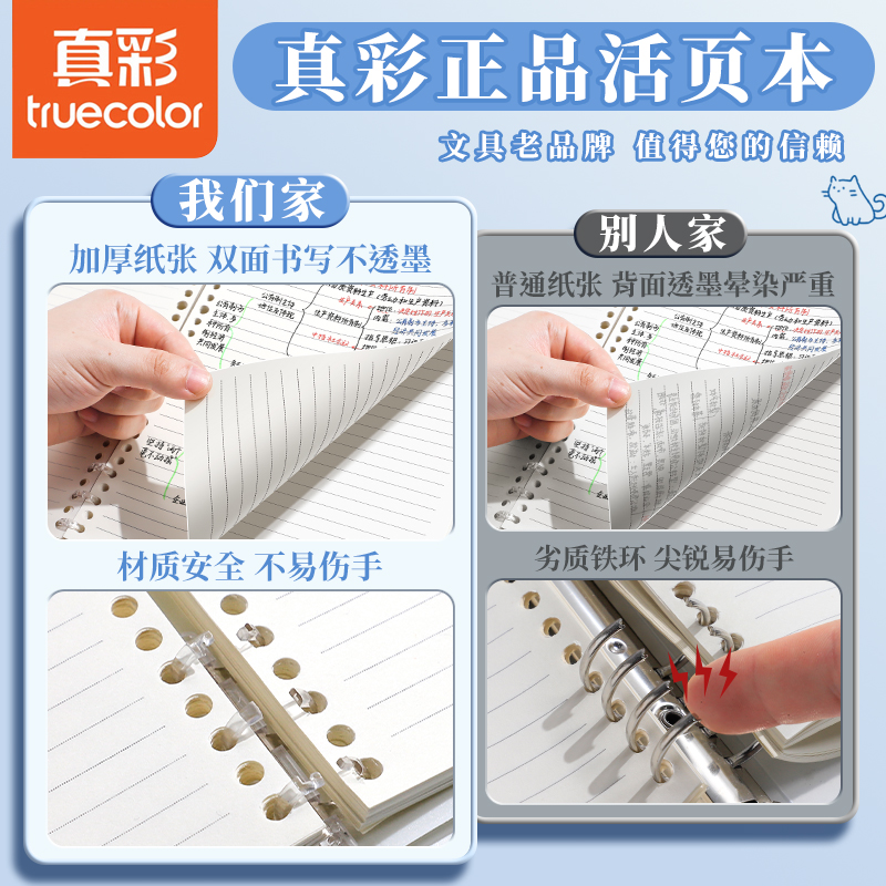 真彩不硌手活页本B5横线笔记本本子a5活页手账本初中生高中生专用记事本可拆卸替芯加厚学生考研线圈本错题本