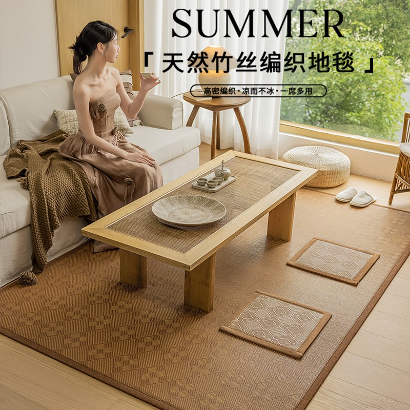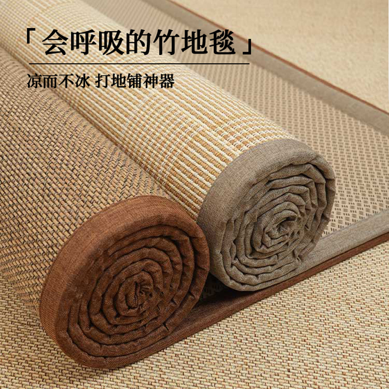 日式藤编地毯客厅凉席夏季卧室加厚家用榻榻米床边毯飘窗地垫