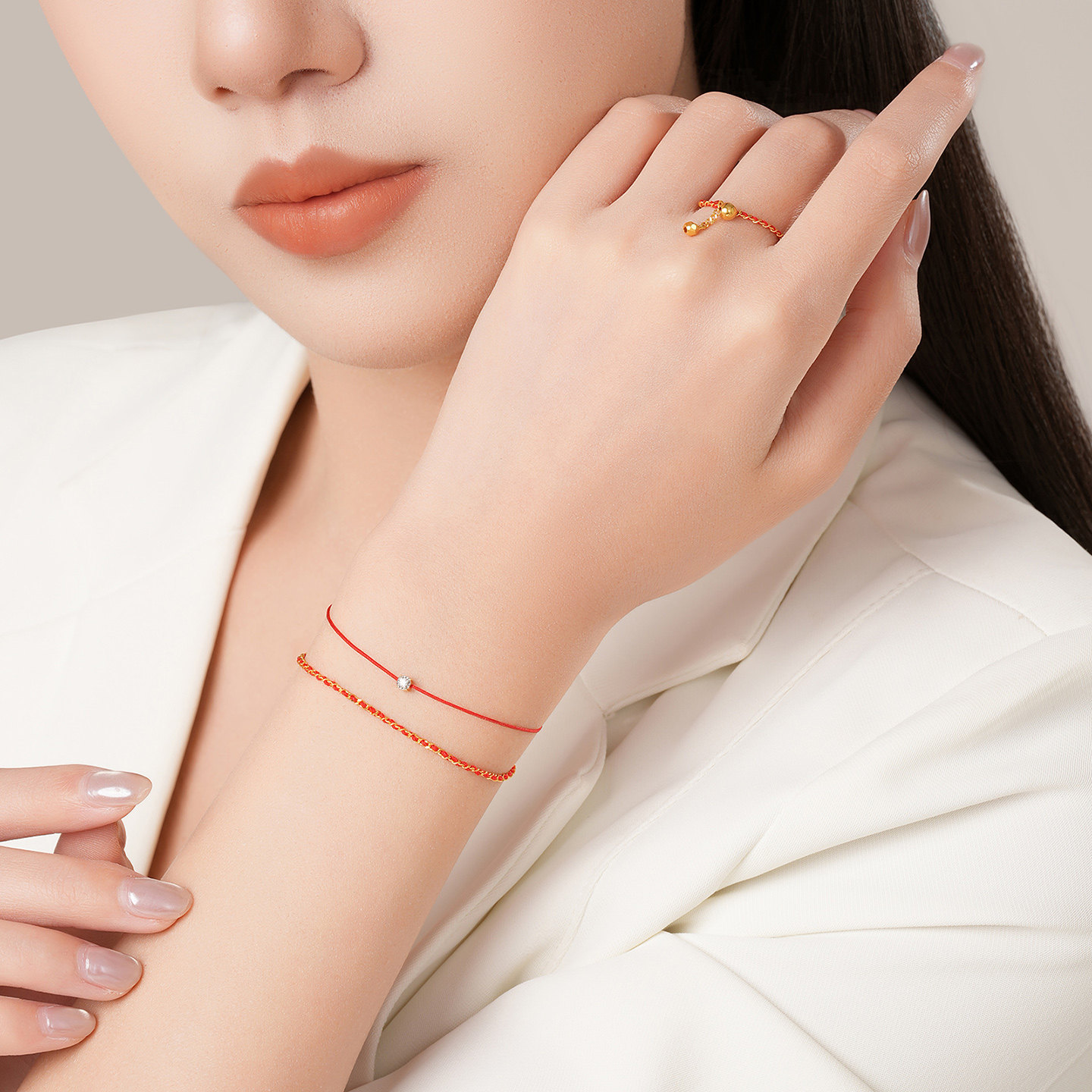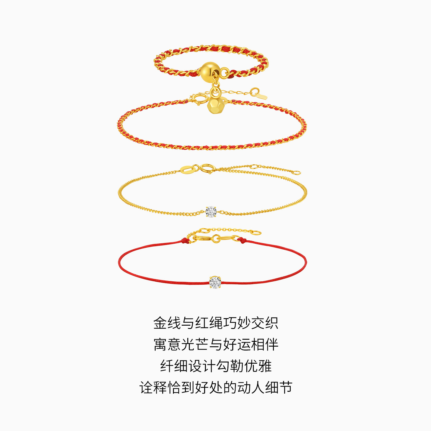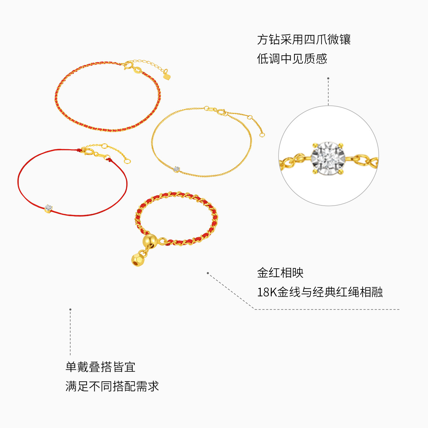 潮宏基至简小方钻黄18K金钻石手链彩金戒指百搭叠戴镶嵌生日