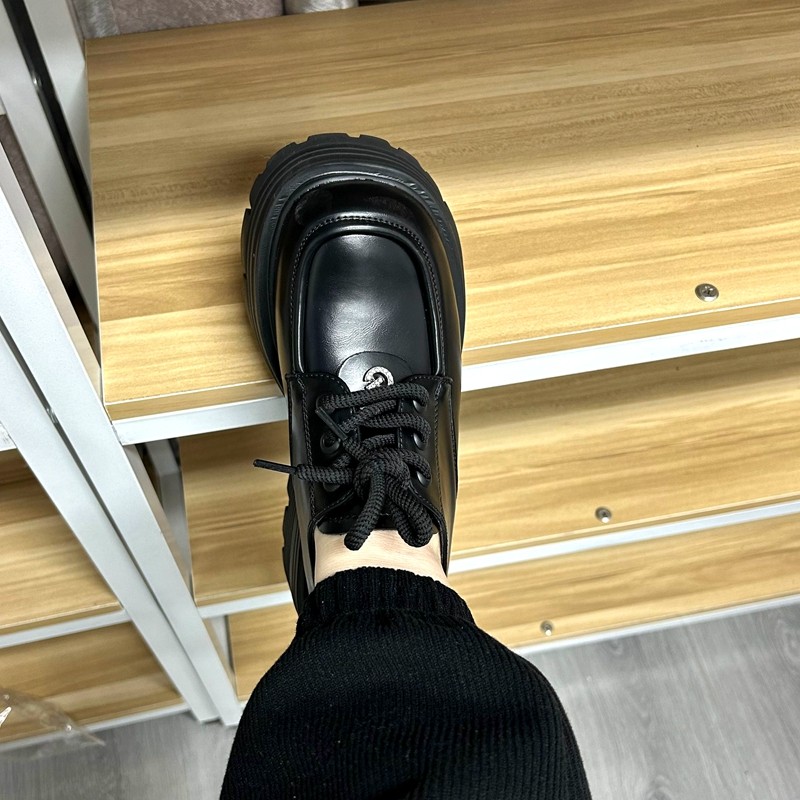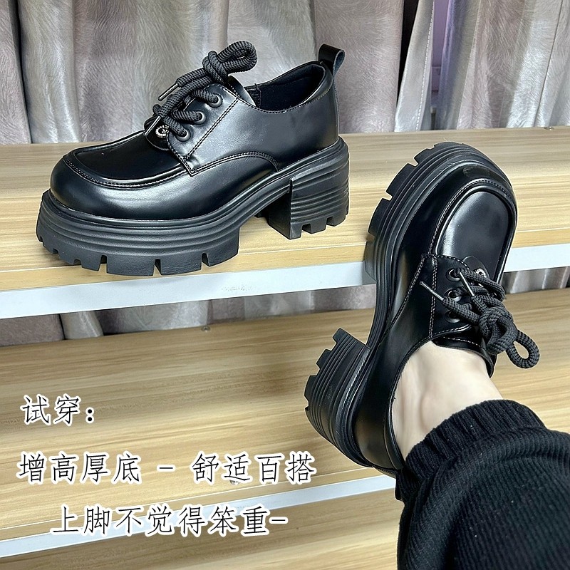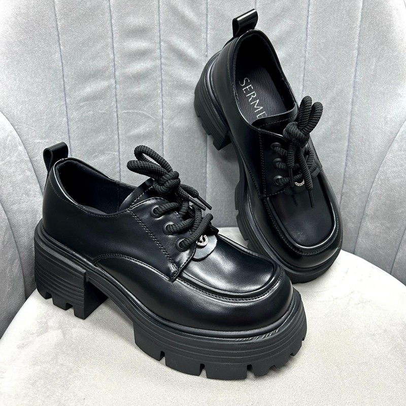 牛皮乐福鞋SM/奢谜厚底单鞋圆头小皮鞋英伦风粗跟系带百搭女鞋