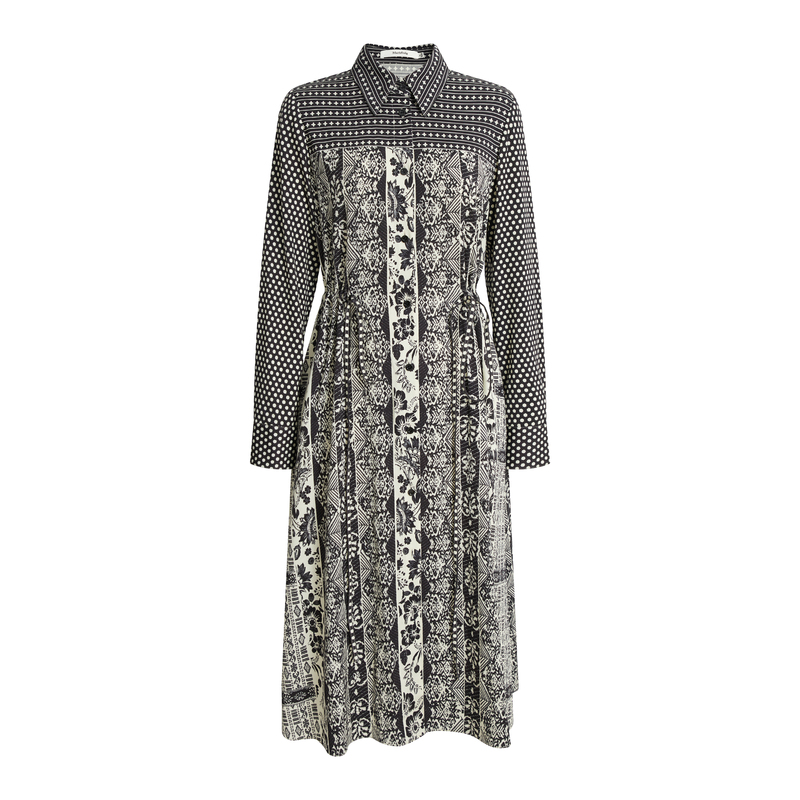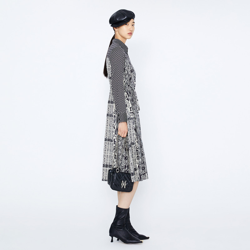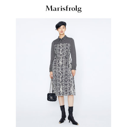 【商场同款】玛丝菲尔连衣裙冬季新款衬衫式羊毛长袖花稿长裙女