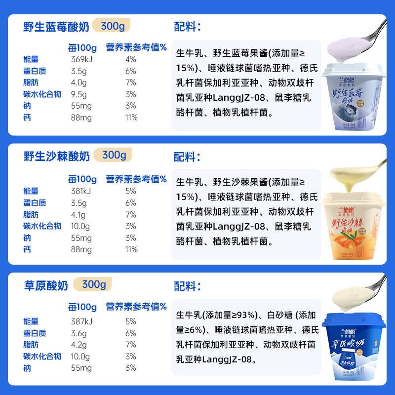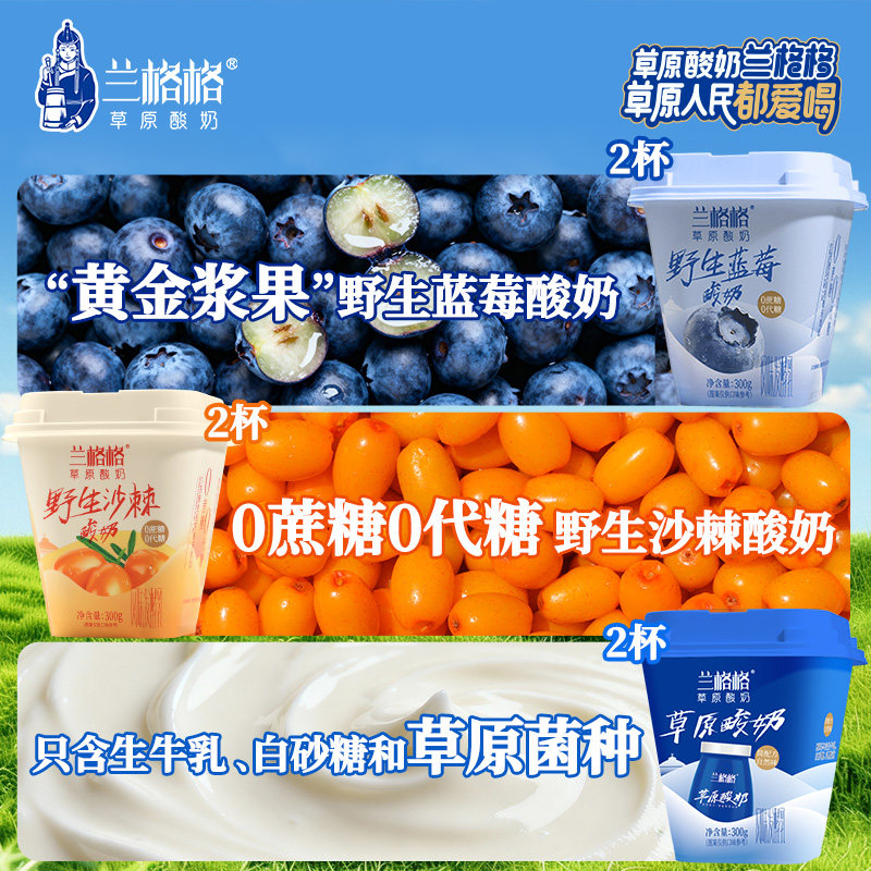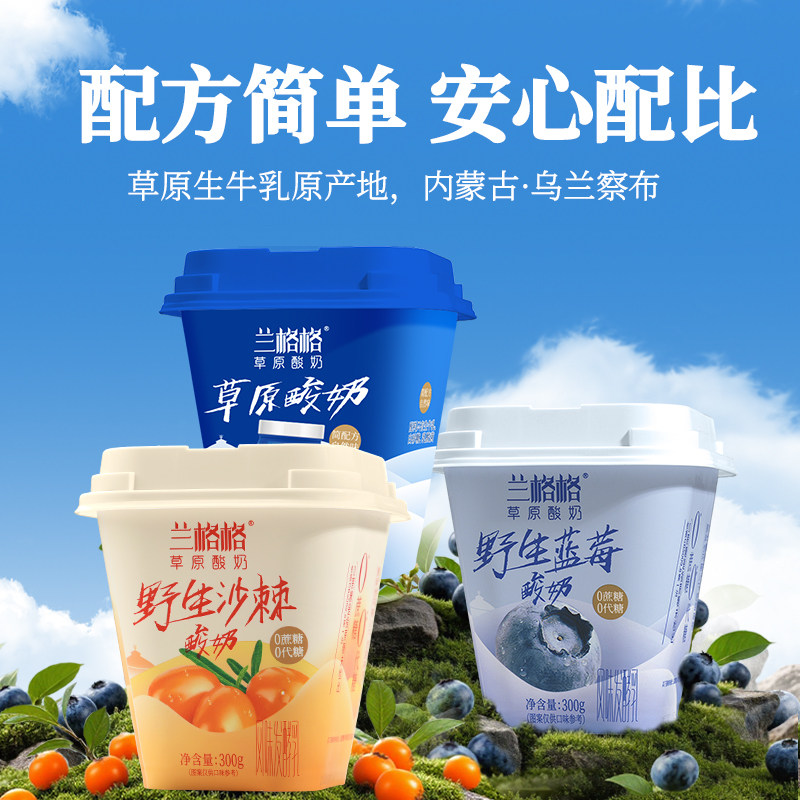 兰格格草原果味酸奶野生蓝莓野生沙棘原味风味益生菌发酵乳300g装