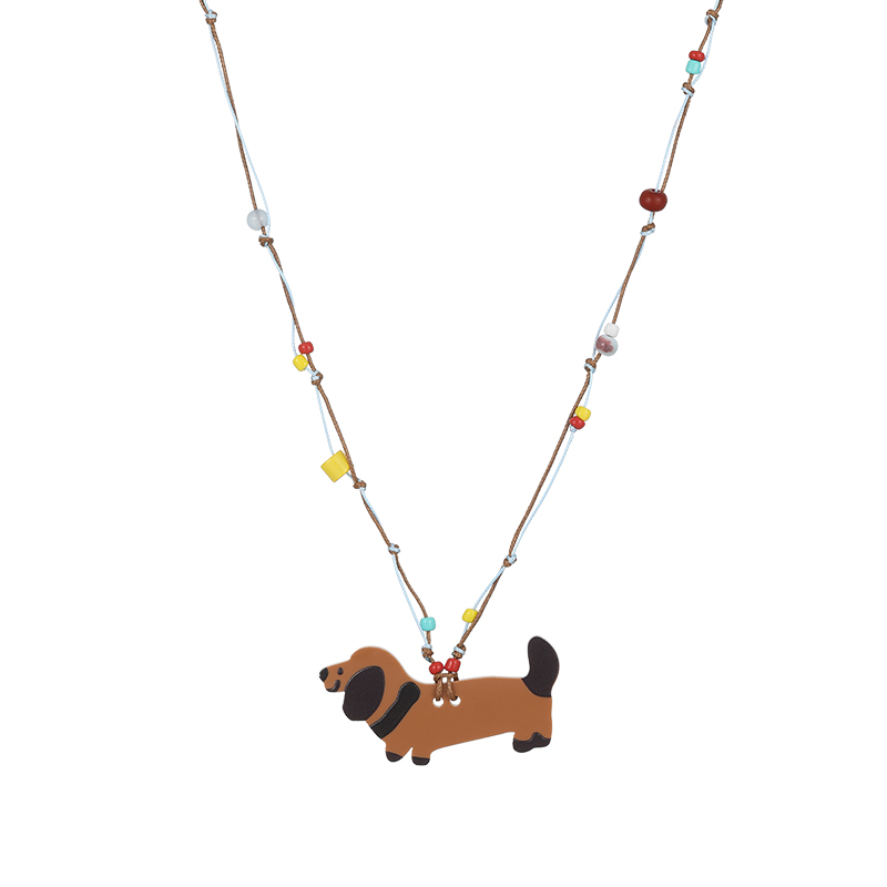 多巴胺腊肠小狗长款项链女彩色串珠吊坠小众毛衣链高级感挂脖配饰