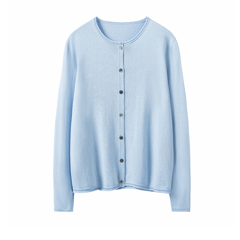 边圆领桑蚕丝羊绒开衫