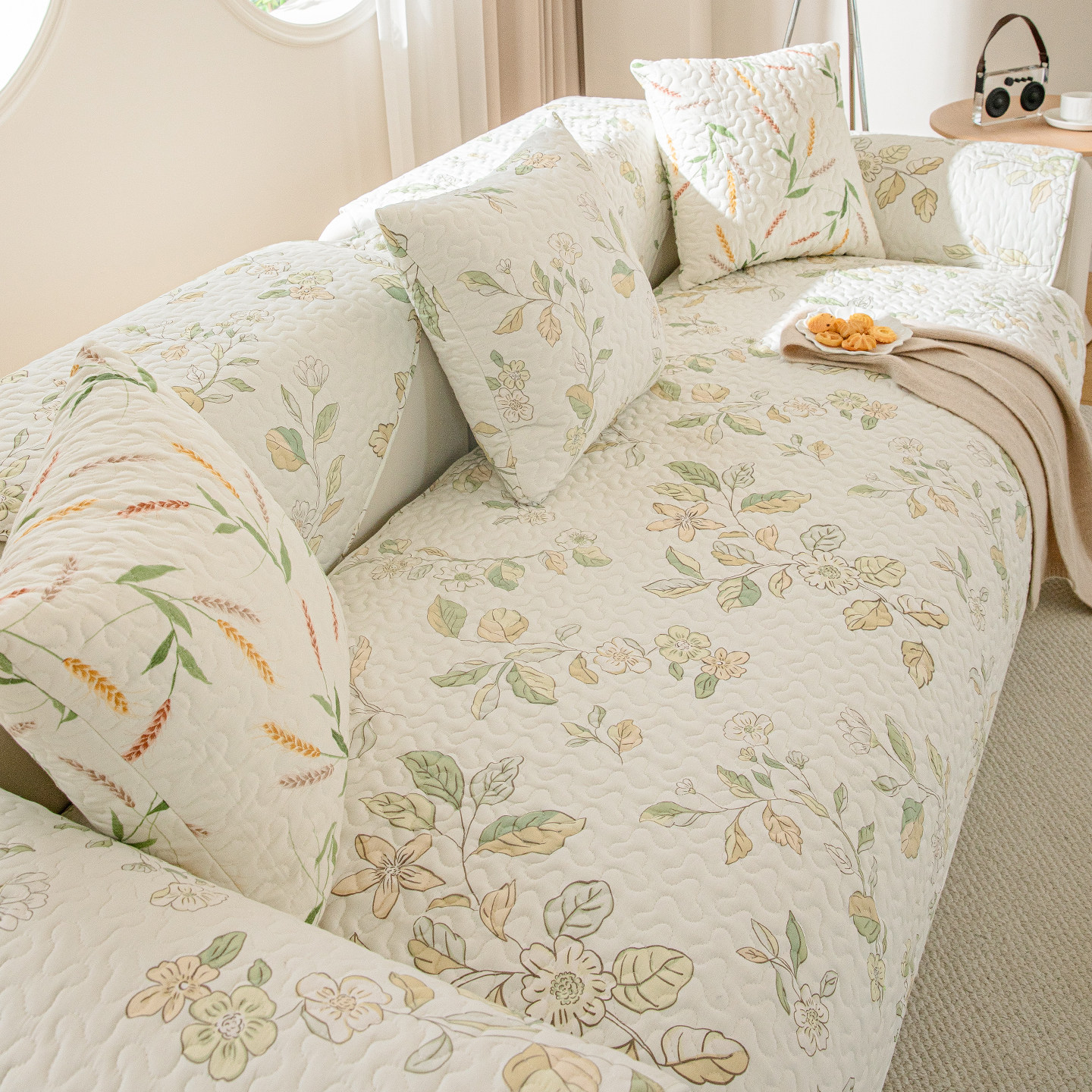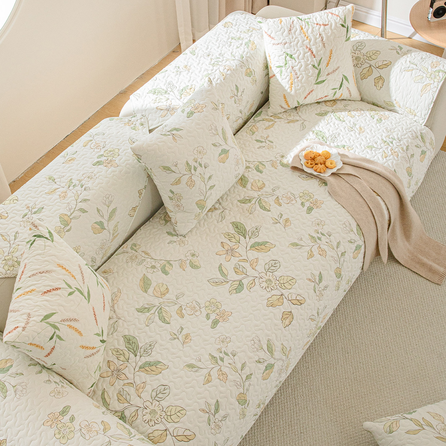 新款四季通用纯棉防滑沙发垫田园