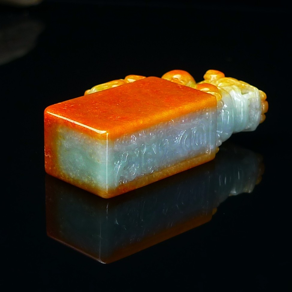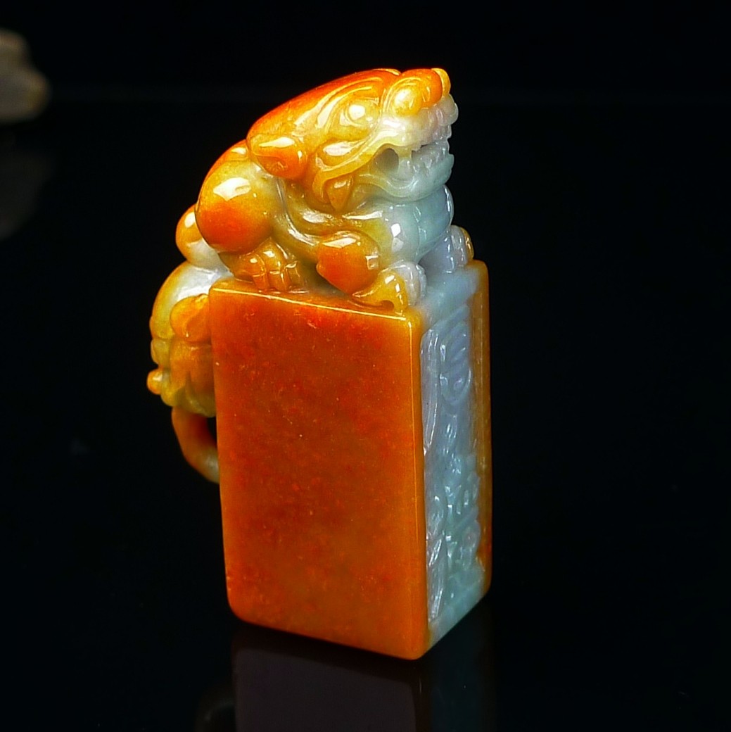 缅甸翡翠A货红翡貔貅印章玉石镇纸 红翡翠貔貅印章摆件篆刻代刻字