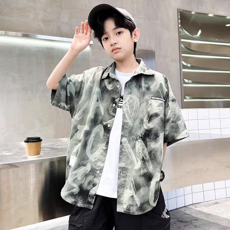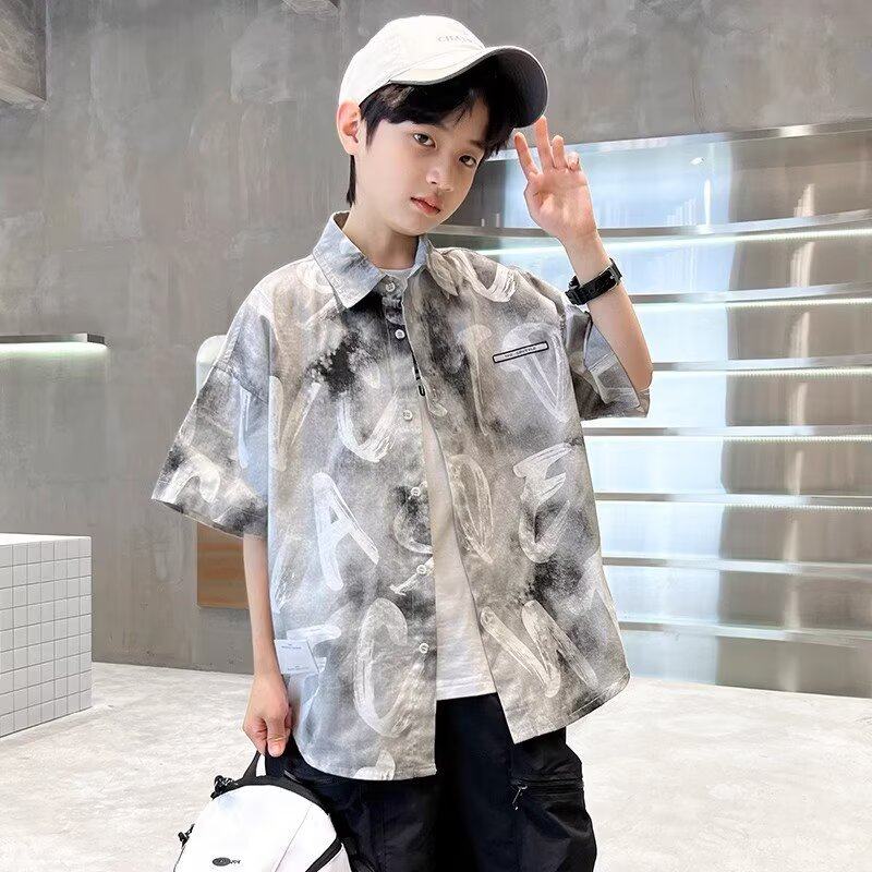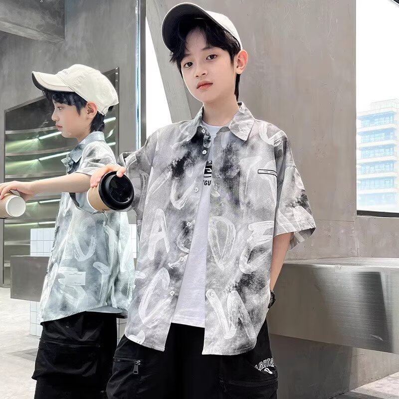 儿童装男童夏季短袖衬衫2025新款夏装薄款夏款男孩中大童帅洋气潮